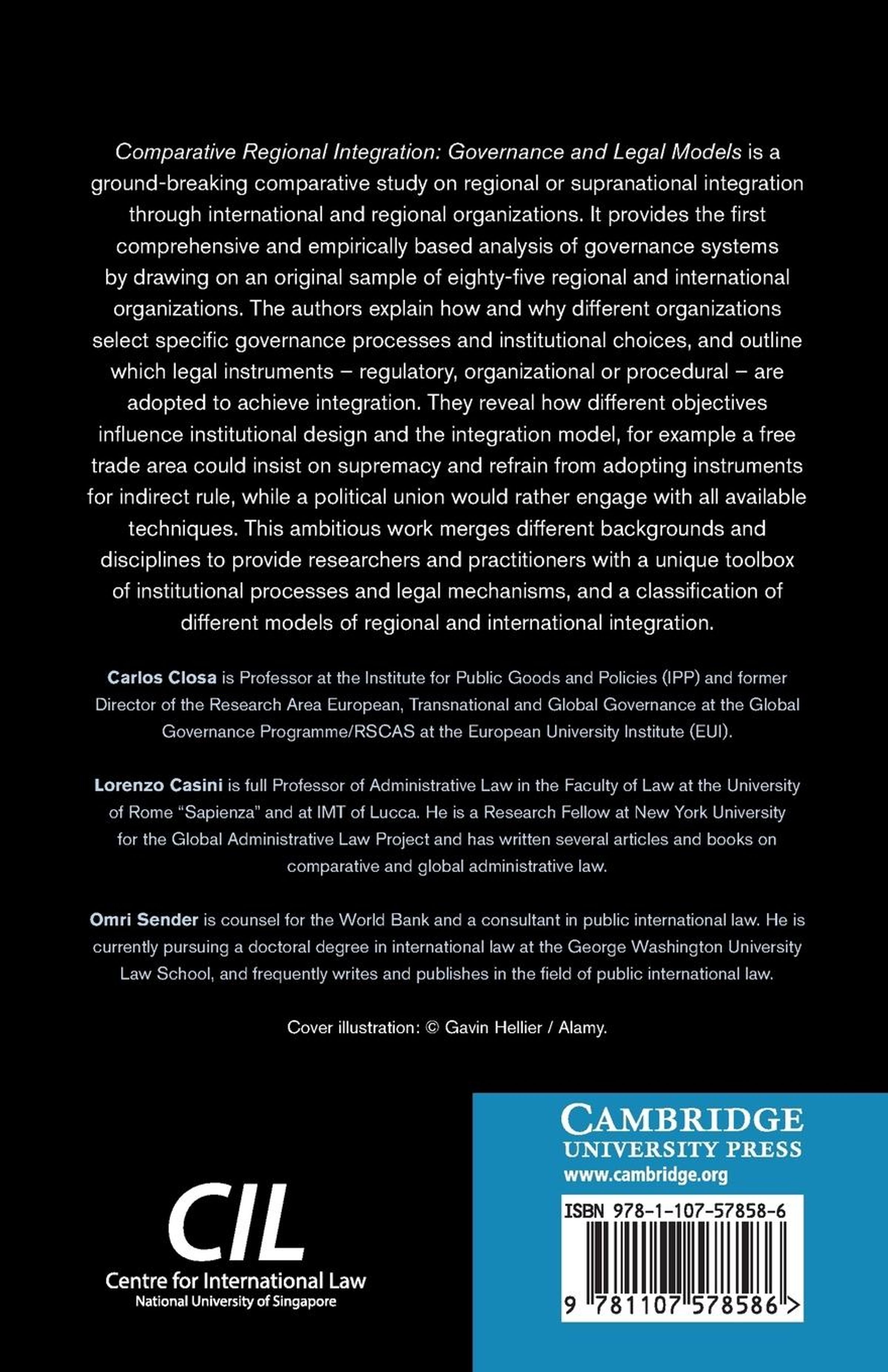 Comparative Regional Integration: Governance and Legal Models is a groundbreaking comparative study on regional or supranational integration through international and regional organizations. It provides the first comprehensive and empirically based analysis of governance systems by drawing on an original sample of 87 regional and international organizations. The authors explain how and why different organizations select specific governance processes and institutional choices, and outline which legal instruments - regulatory, organizational or procedural - are adopted to achieve integration. They reveal how different objectives influence institutional design and the integration model, for example a free trade area could insist on supremacy and refrain from adopting instruments for indirect rule, while a political union would rather engage with all available techniques. This ambitious work merges different backgrounds and disciplines to provide researchers and practitioners with a unique toolbox of institutional processes and legal mechanisms, and a classification of different models of regional and international integration.