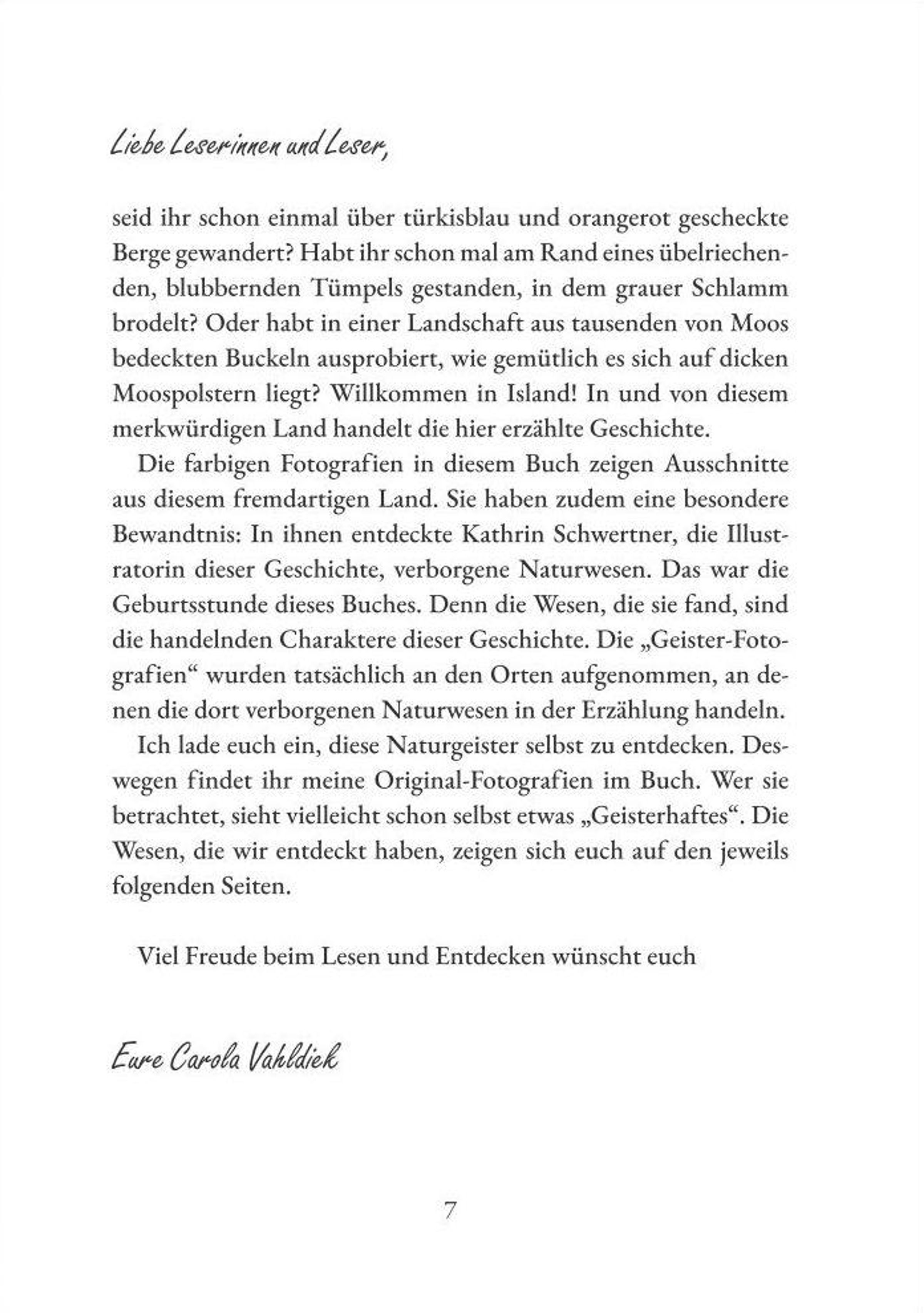 Einzigartig interaktiv bebildert mit farbigen Fotografien aus Island und künstlerischen Schwarzweiß-Illustrationen von Kathrin Schwertner.