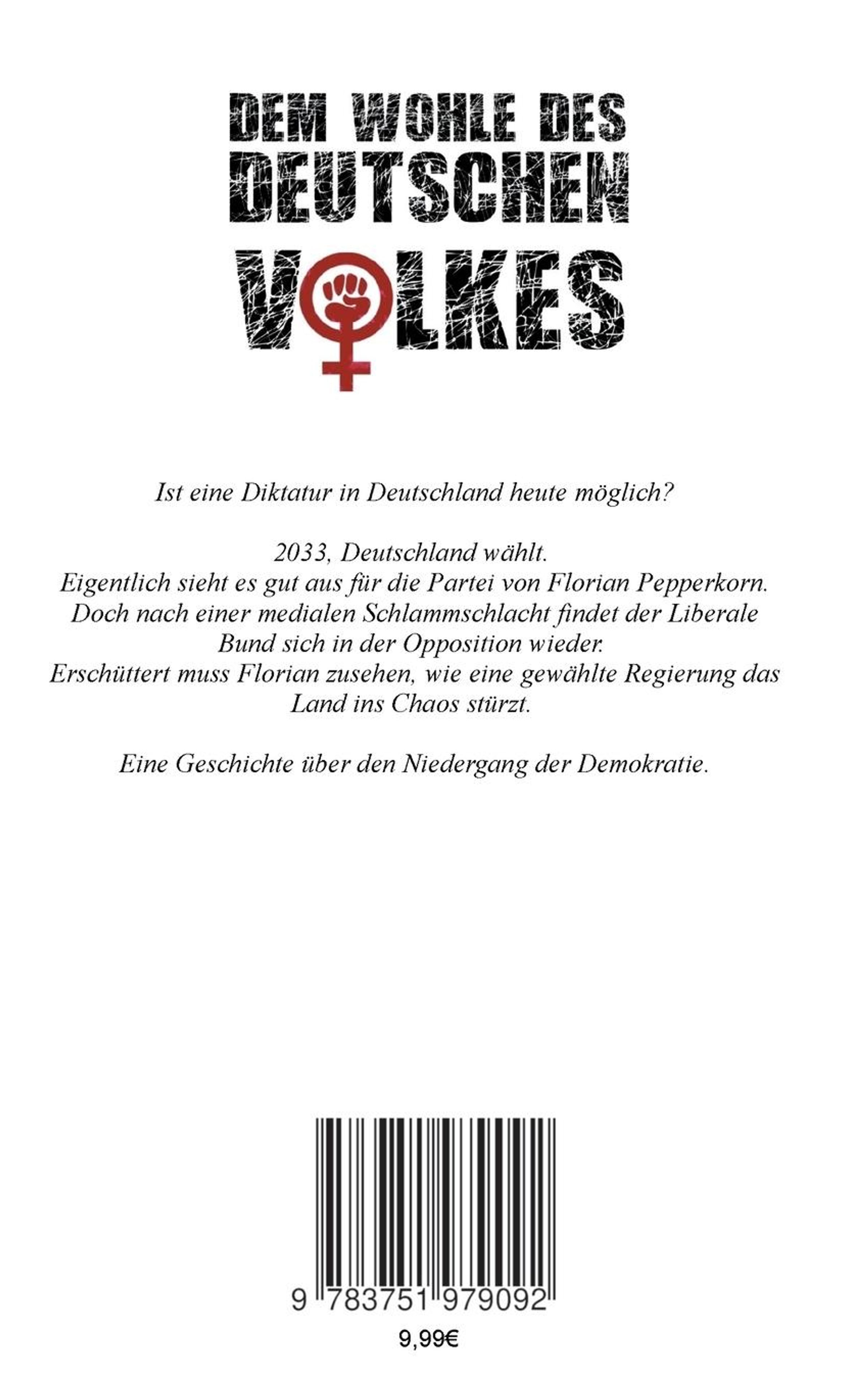 2033, Deutschland wählt. Eigentlich sieht es gut aus für die Partei von Florian Pepperkorn. Doch nach einer medialen Schlammschlacht findet der Liberale Bund sich in der Opposition wieder. Erschüttert muss Florian zusehen, wie eine gewählte Regierung das Land ins Chaos stürzt.