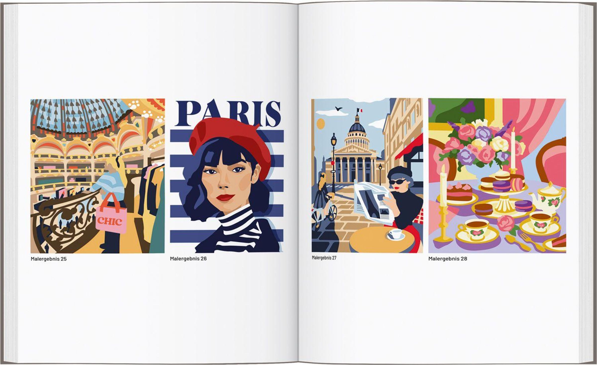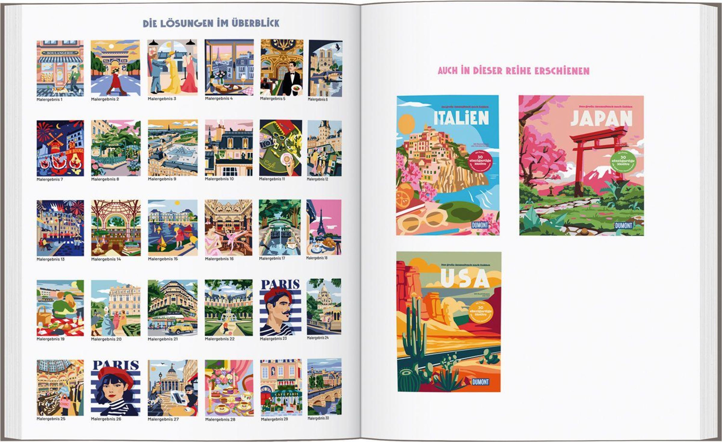 DAS AUSMALBUCH IM GROSSFORMAT gibt es jetzt zu Paris - so stylish, chic und charmant wie die Stadt selbst! Ob berühmte Highlights, typische Paris-Szenen oder verträumte Fantasiewelten - jede Seite lädt zum kreativen Entspannen ein. Malerfahrung ist dafür nicht nötig - einfach Pinsel oder Stift zur Hand nehmen, der Farbpalette und den nummerierten Farbfeldern folgen und beobachten, wie aus jedem der 30 Motive ein kleines Kunstwerk entsteht. Dank des modernen Einbands im Stil eines Skizzenblocks ist dieses Ausmalbuch für alle, die kreativ sein und sich in Gedanken auf eine besondere Städtereise machen wollen, das perfekte Geschenk!