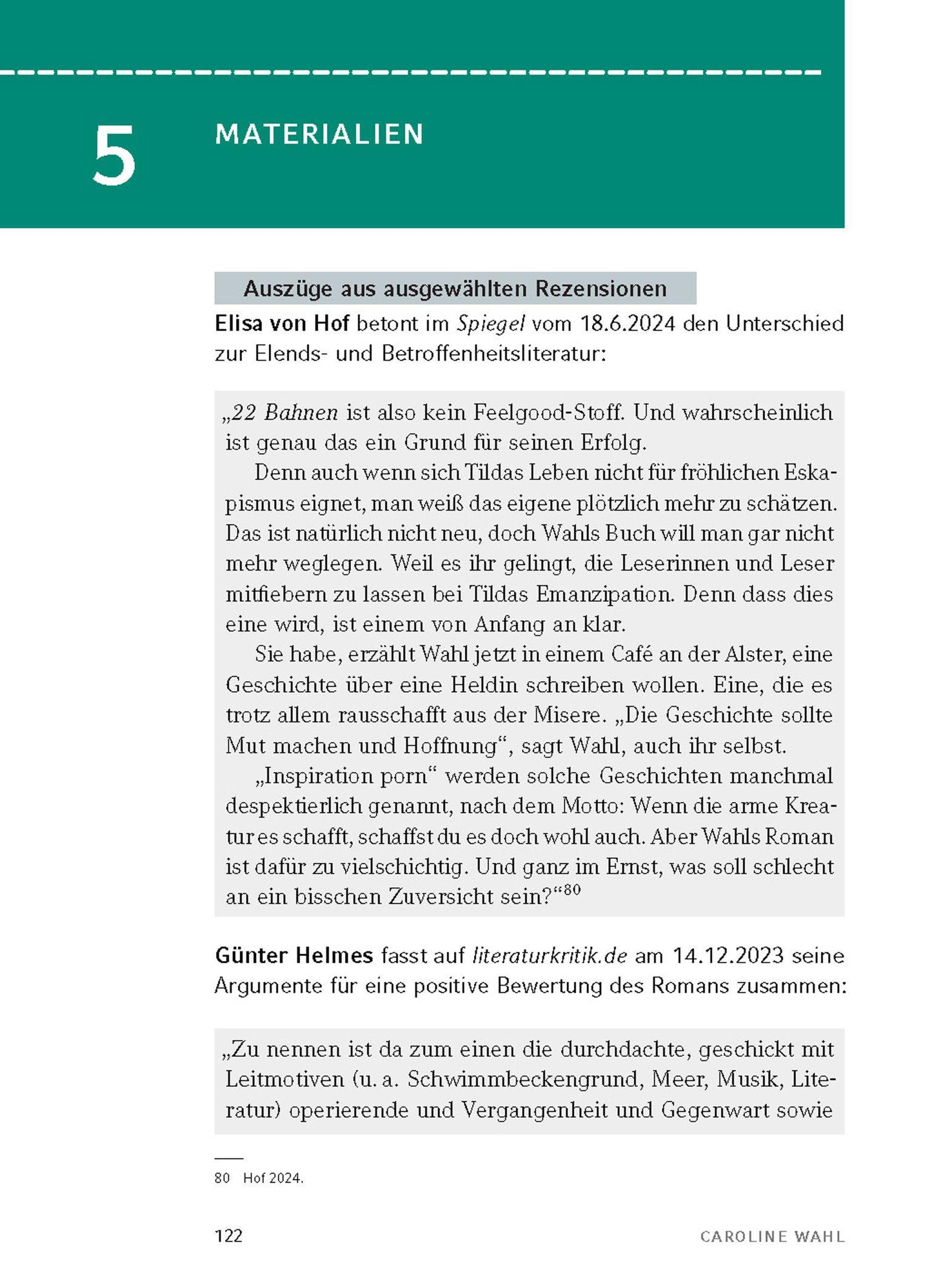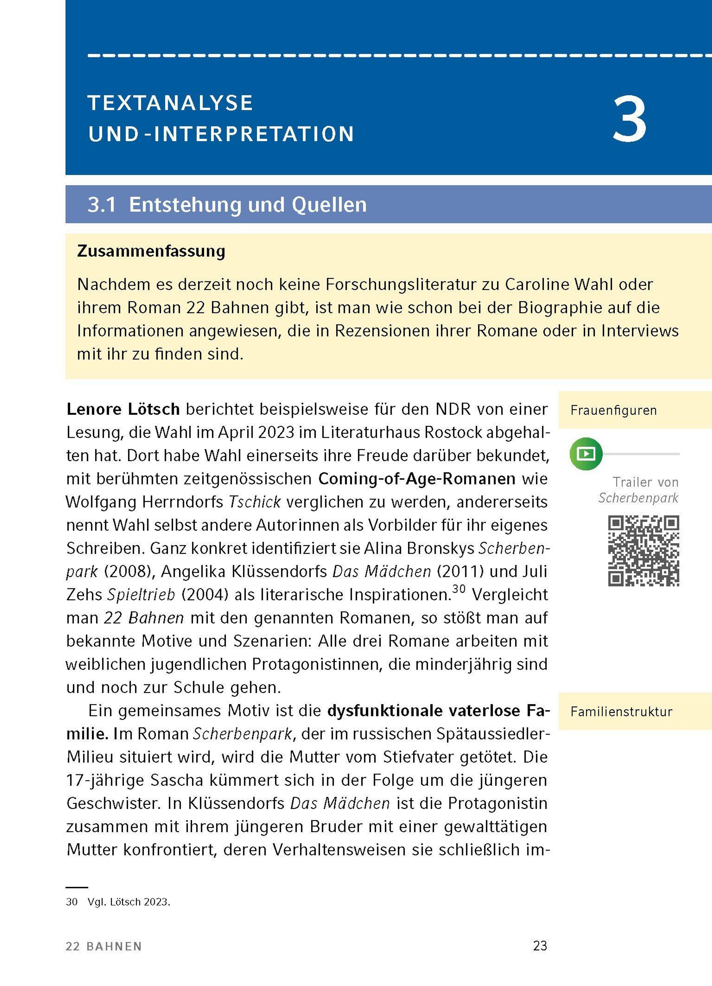 22 Bahnen von Caroline Wahl - Textanalyse und Interpretation