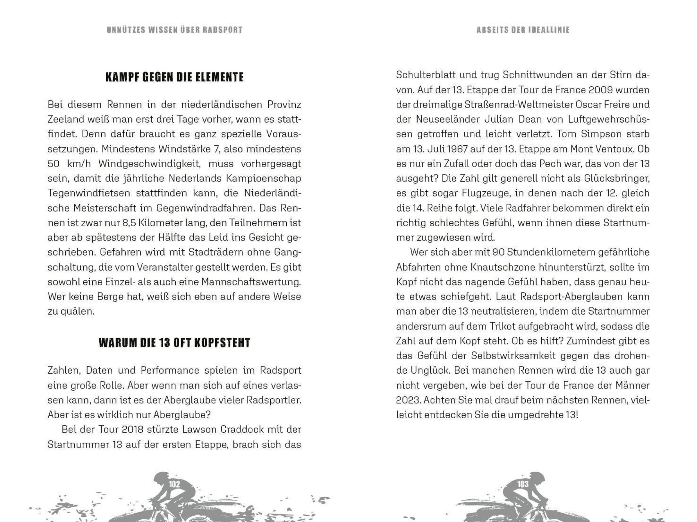 Eine Sammlung abgefahrener Anekdoten, spektakulärer Rekorde und erstaunlicher Hintergründe aus der Geschichte des Radsports - und eine Fundgrube für alle, die Radsport lieben.