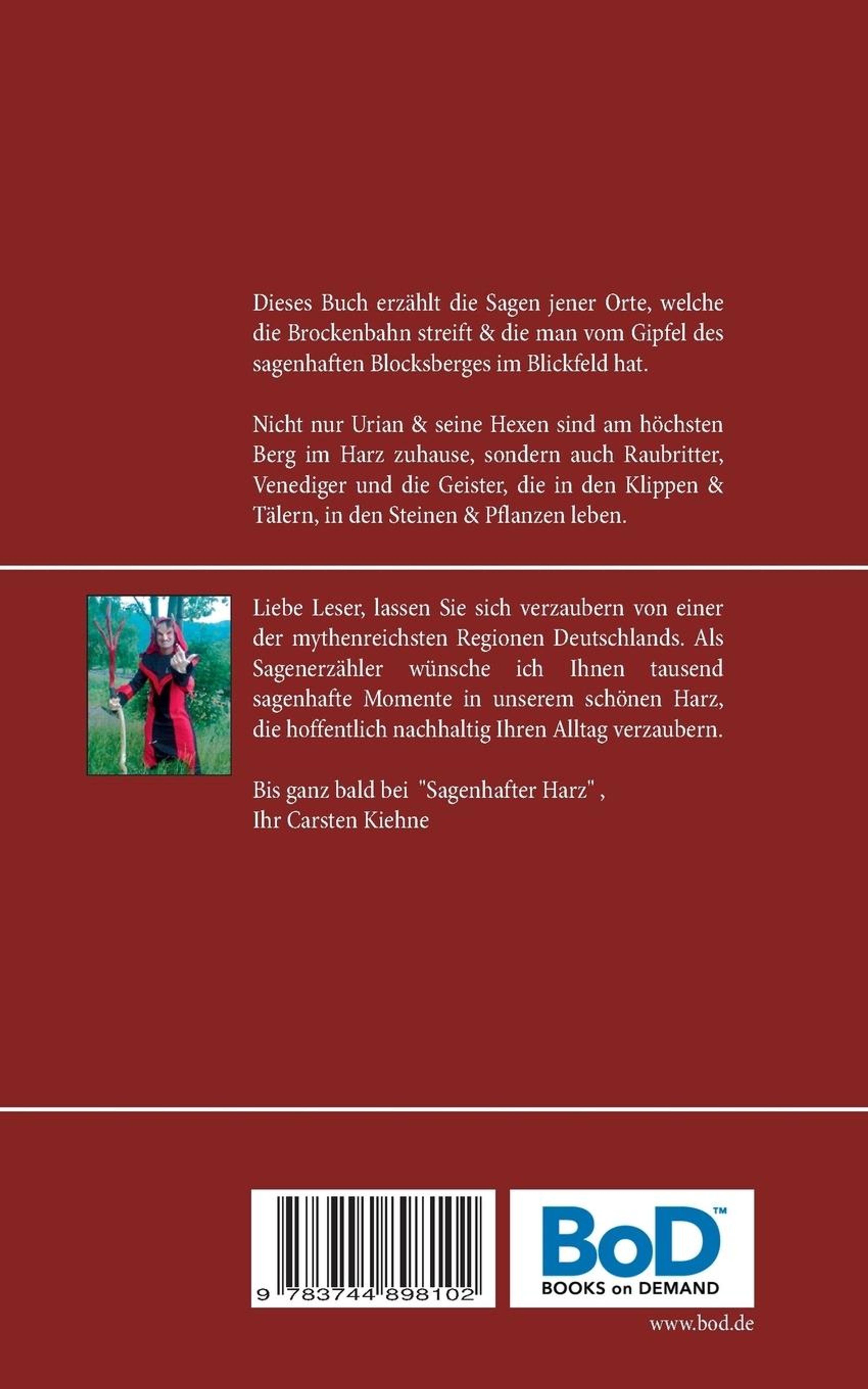 in meinem elften Buch "Sagenhafter Brocken" erzähle ich die Sagen von all jenen Orten, die man mit der Brockenbahn streift und die man vom Gipfel des sagenhaften Blocksberges aus im Blickfeld hat. Nicht nur Urian und seine Hexen sind am höchsten Berg im Harz zuhause, sondern auch Raubritter, Venediger und die Geister, die in den Klippen & Tälern, in den Steinen & Pflanzen leben.