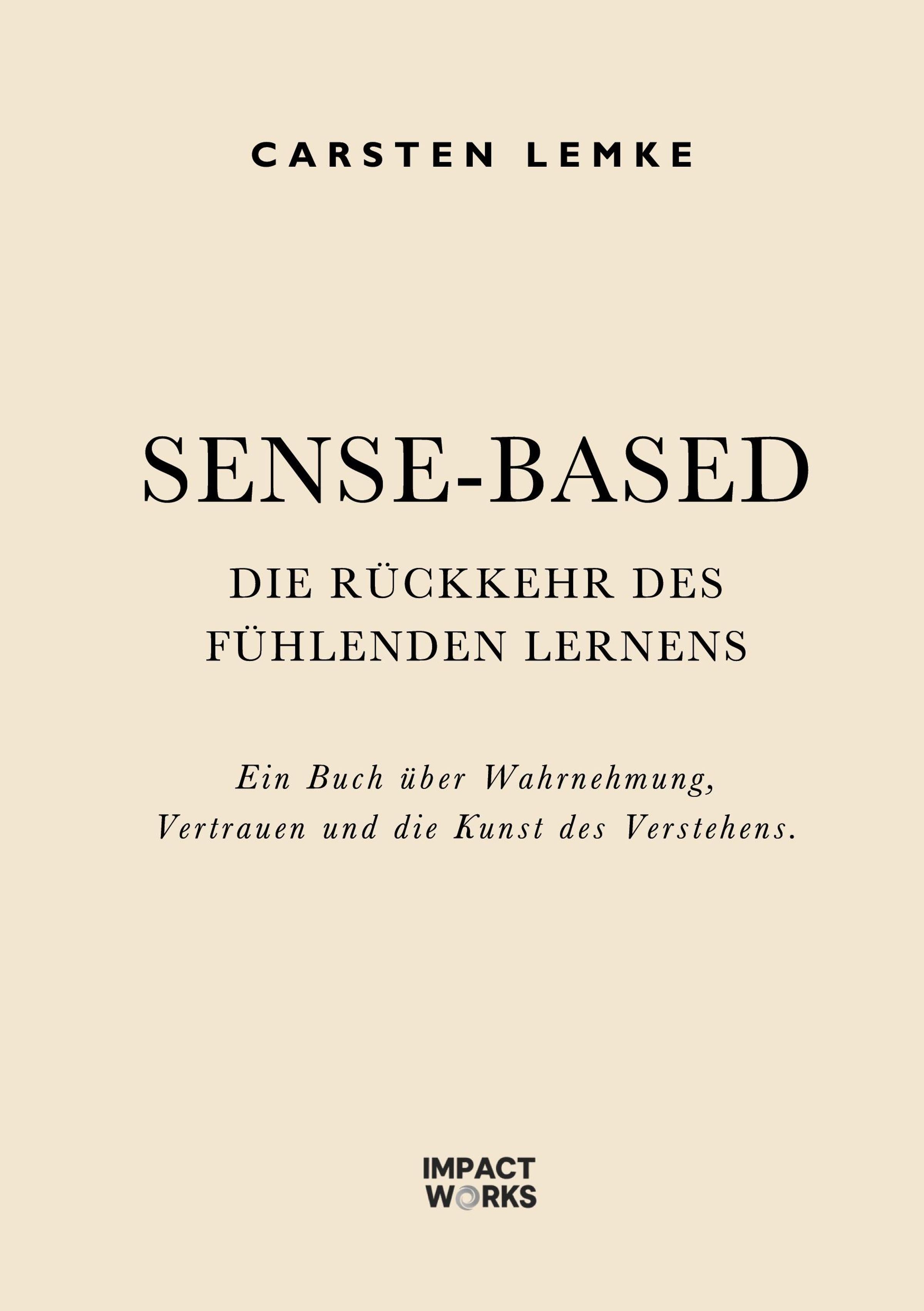 Carsten Lemke, "Sense-Based: Die Rückkehr des fühlenden Lernens", Ein Buch über Wahrnehmung. Unten Impact Works Logo., Buch