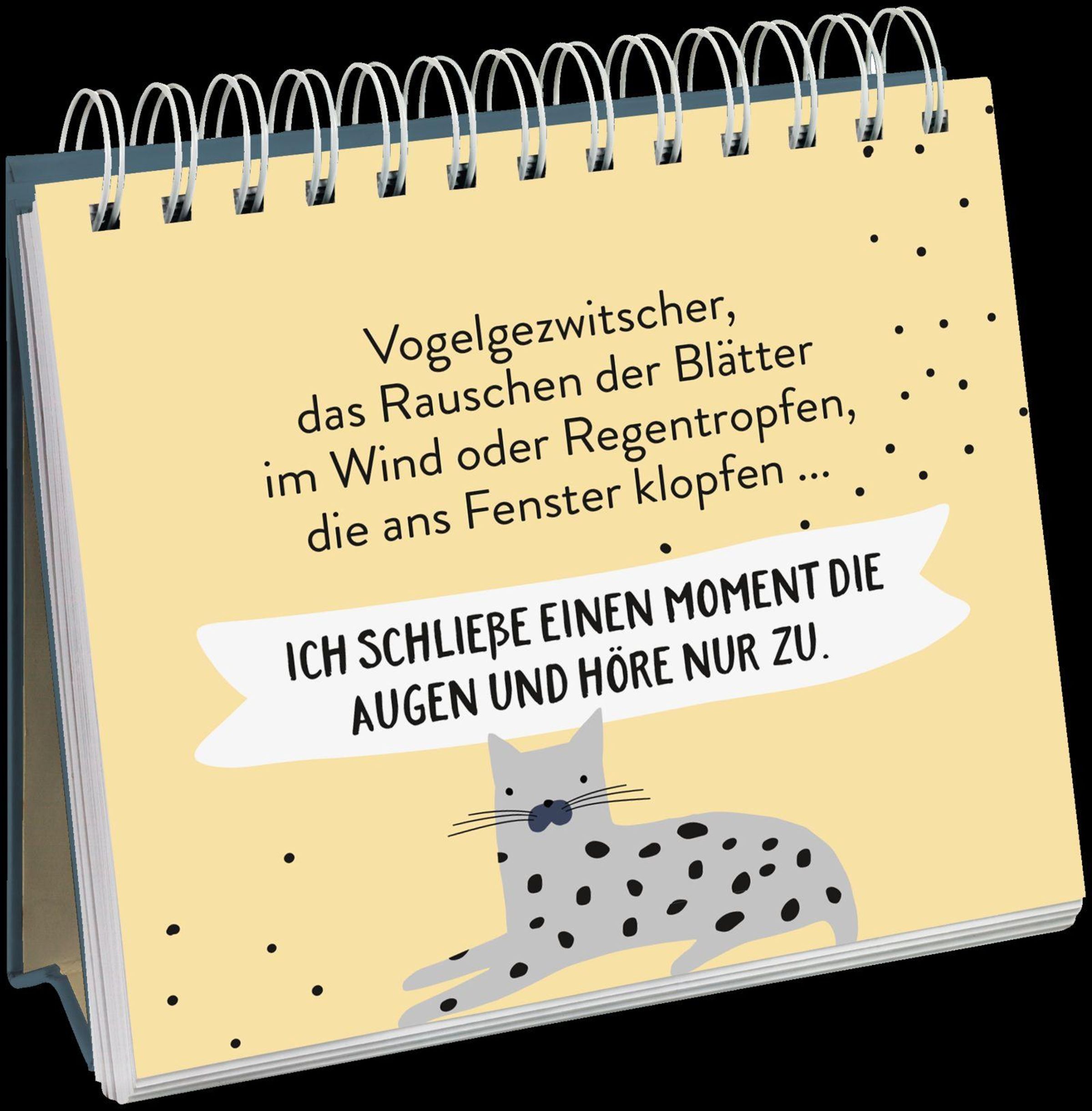 Schöner Sprüche-Aufsteller für KatzenliebhaberEin wundervoller Katzen-Aufsteller mit kleinen Affirmationen und Impulsen für den Alltag. Die Zitate und Sprüche in diesem Katzen-Geschenk sind eine besondere kleine Aufmerksamkeit und nicht nur Katzenliebhaber sondern auch alle anderen Tierfreunde können sich zu mehr Lebensqualität und Zufriedenheit inspirieren lassen. Der lustige Katzen-Aufsteller ist voller Anregungen, die man von einer Katze lernen kann.