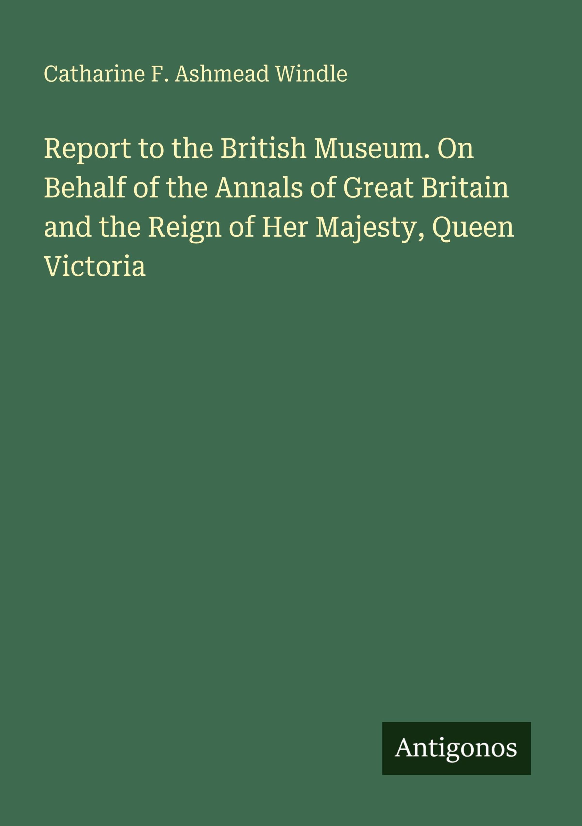 Catharine F. Ashmead Windle: Report to the British Museum. On Behalf of the Annals of Great Britain and the..., Kartoniert / Broschiert