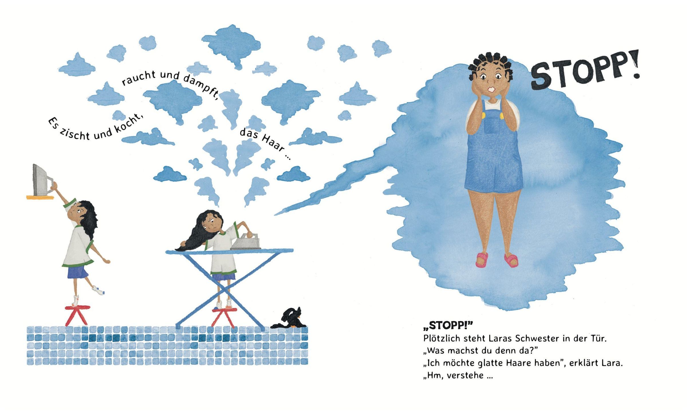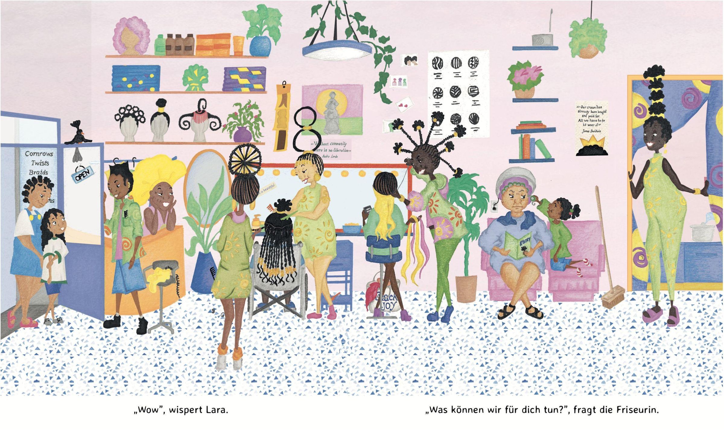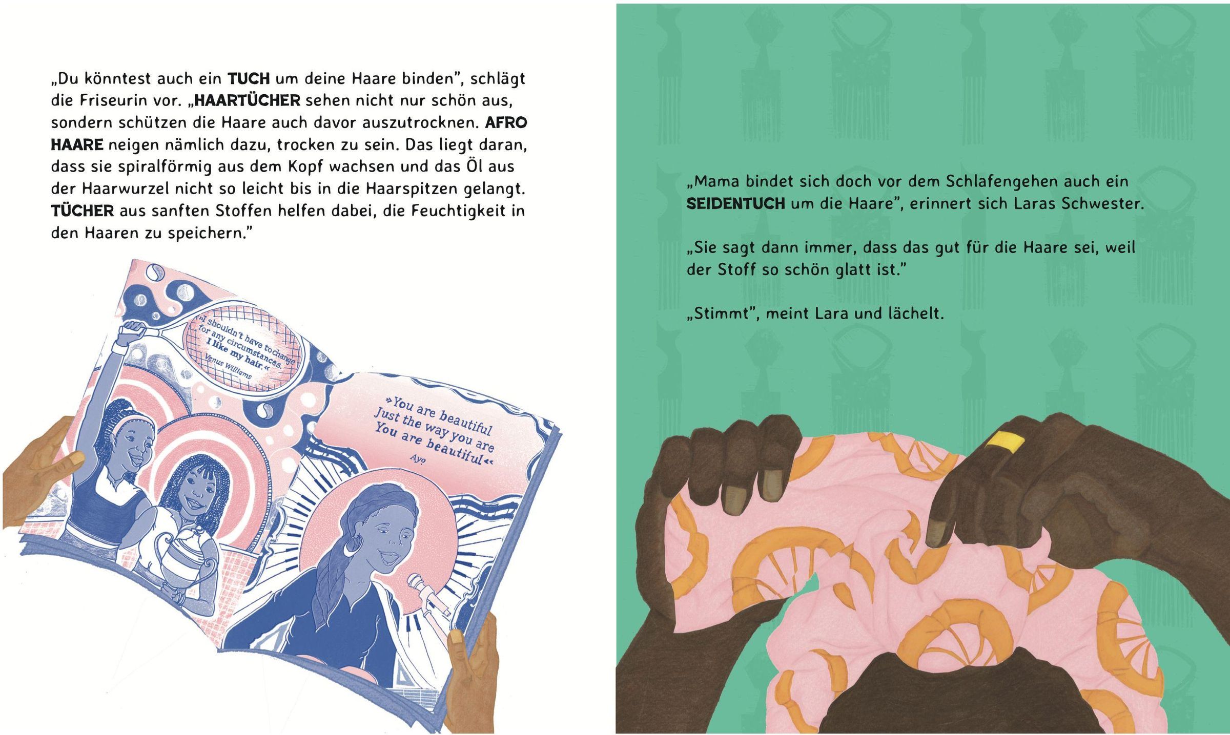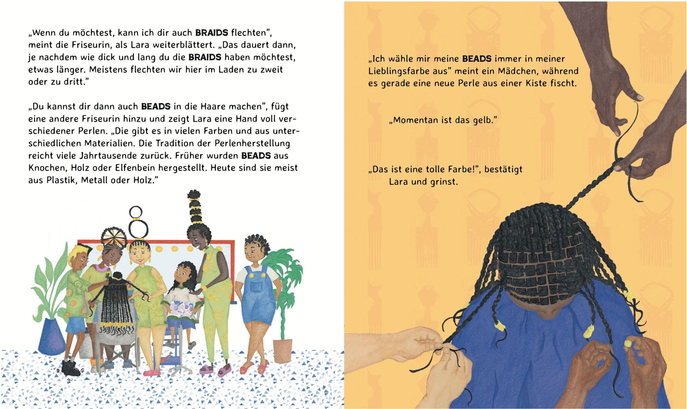 Zum Glück hat sie eine große Schwester, die ihr Unterstützung anbietet. Gemeinsam besuchen sie einen Haarkunstshop. Dort entdeckt Lara, wie vielfältig und besonders Haare sein können - und dass jede Frisur ihre eigene Geschichte erzählt. Schließlich versteht Lara: Ihre Haare sind genau richtig, so wie sie sind. Sie lernt, sich von verletzenden Worten nicht kleinmachen zu lassen. Eine warmherzige Geschichte über Selbstvertrauen, Vielfalt und den Mut, zu sich selbst zu stehen.