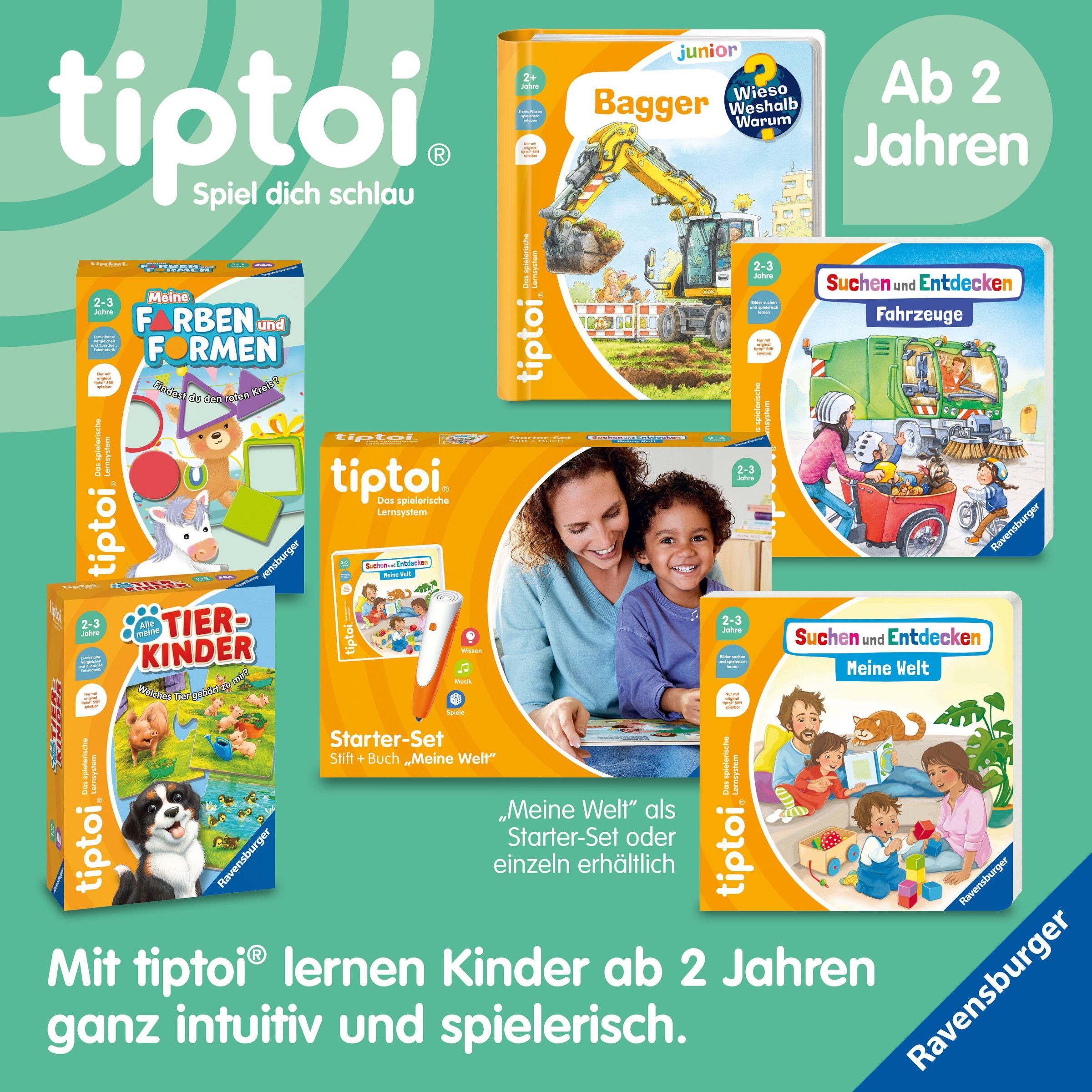 Was macht der Bagger auf der Baustelle? Wie groß wurden Dinosaurier? Die interaktive Sachbuchreihe tiptoi® Wieso? Weshalb? Warum? junior beantwortet erste Kinderfragen auf Augenhöhe. Die klaren und liebevollen Bilder werden durch viele authentische Geräusche lebendig. Das Sachwissen wird altersgerecht erklärt und ist fachlich geprüft. Dank der einfachen und intuitiven Nutzung mit dem tiptoi®-Stift können Kinder mit viel Spaß ihre Lieblingsthemen selbstständig entdecken. Ein Spiel, ein Lied und ein spannendes Hörspiel, lassen die Kinder noch tiefer in das jeweilige Thema eintauchen.