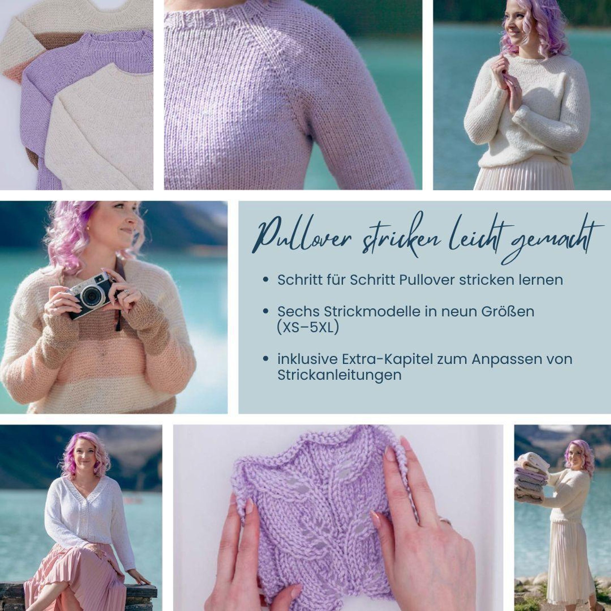 Die sechs enthaltenen Strickanleitungen für Pullover und Cardigans in den Größen XS-5XL bieten sofort umsetzbare Strickprojekte für unterschiedliche Schwierigkeitsstufen. Egal, ob du einen simplen Pullover, eine Oversize-Strickjacke oder einen Cardigan stricken möchtest: Hier findest du verschiedene Strickideen, die Lust auf mehr machen.