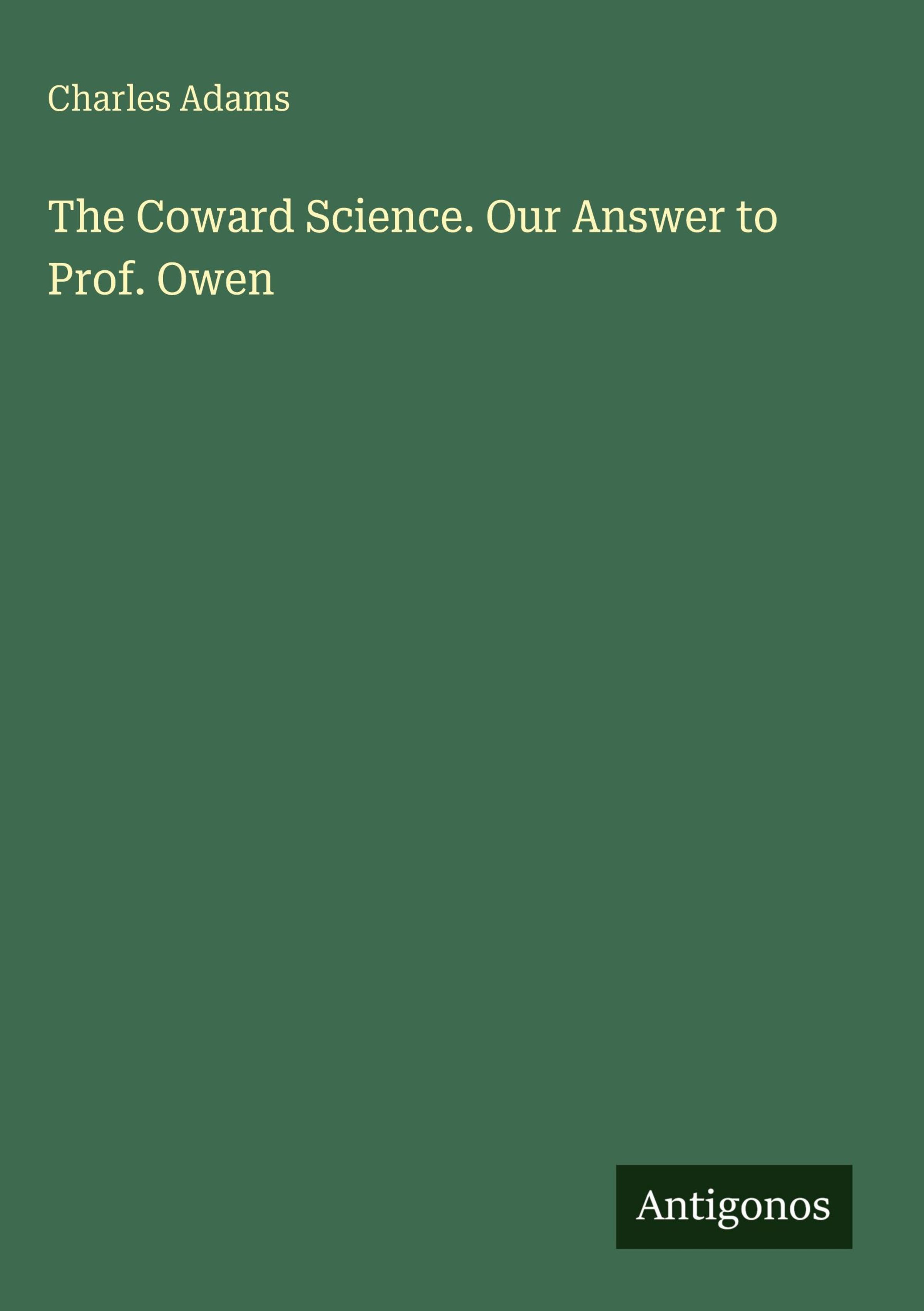 Charles Adams: The Coward Science. Our Answer to Prof. Owen, Gebunden
