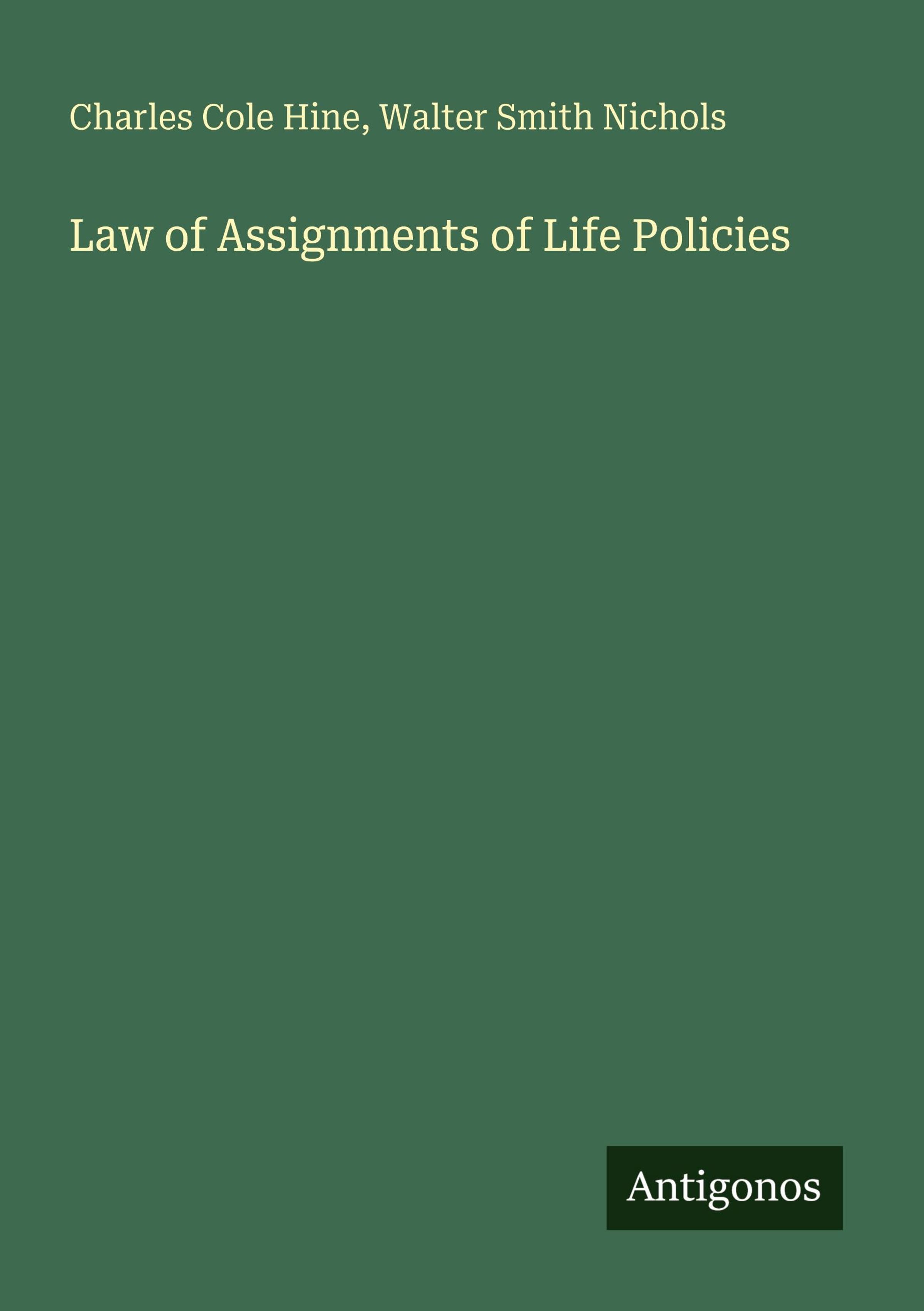 Charles Cole Hine: Law of Assignments of Life Policies, Kartoniert / Broschiert