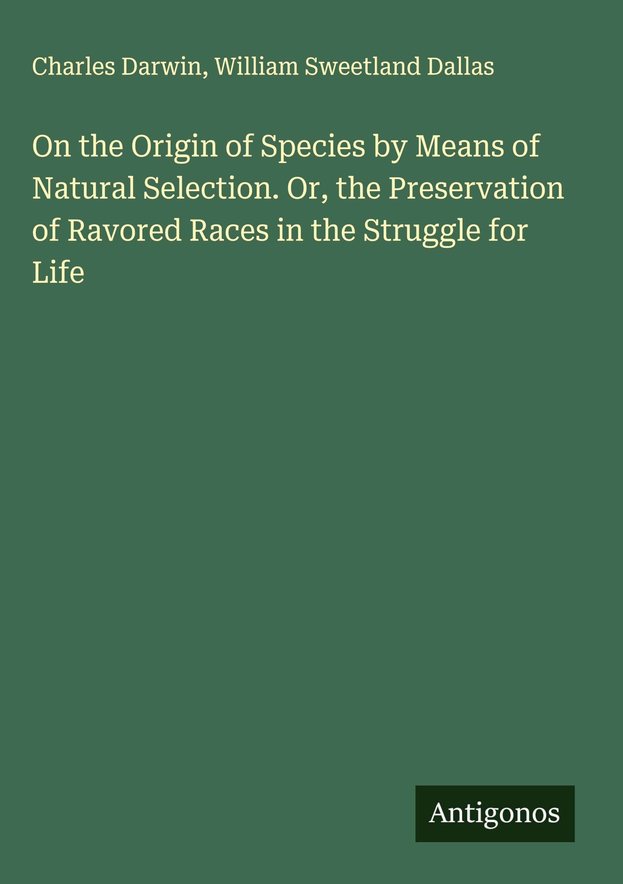 On the Origin of Species by Means of Natural Selection. Or, the Preservation of Ravored Races in the Struggle for Life