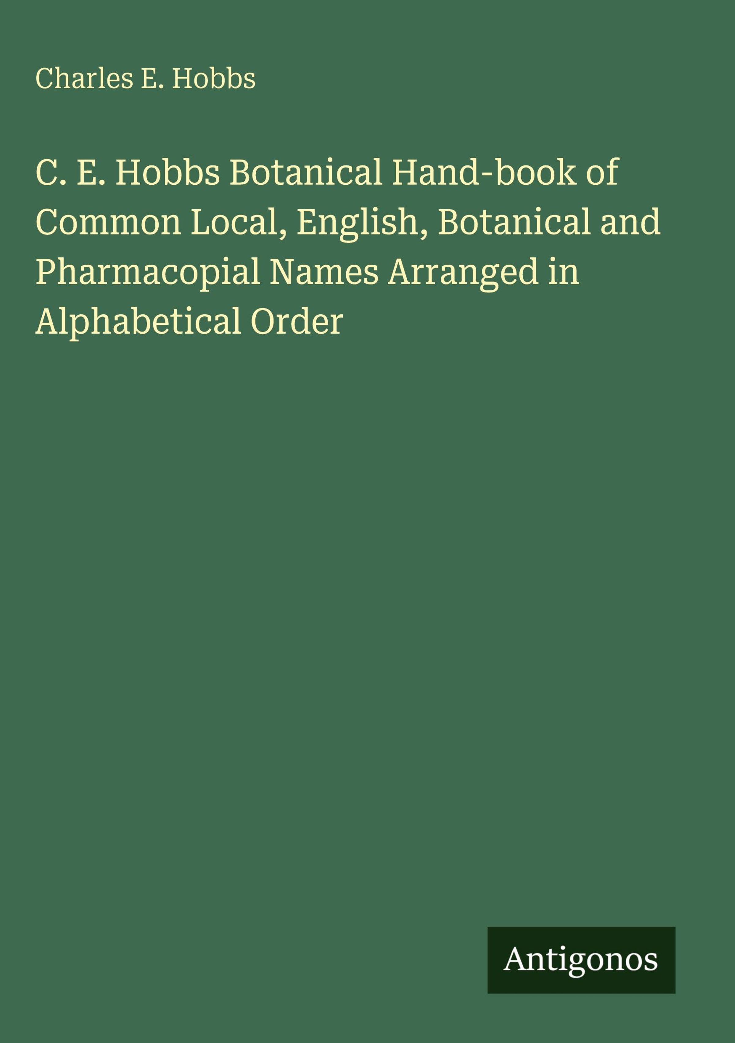 C. E. Hobbs Botanical Hand-book of Common Local, English, Botanical and Pharmacopial Names Arranged in Alphabetical Order