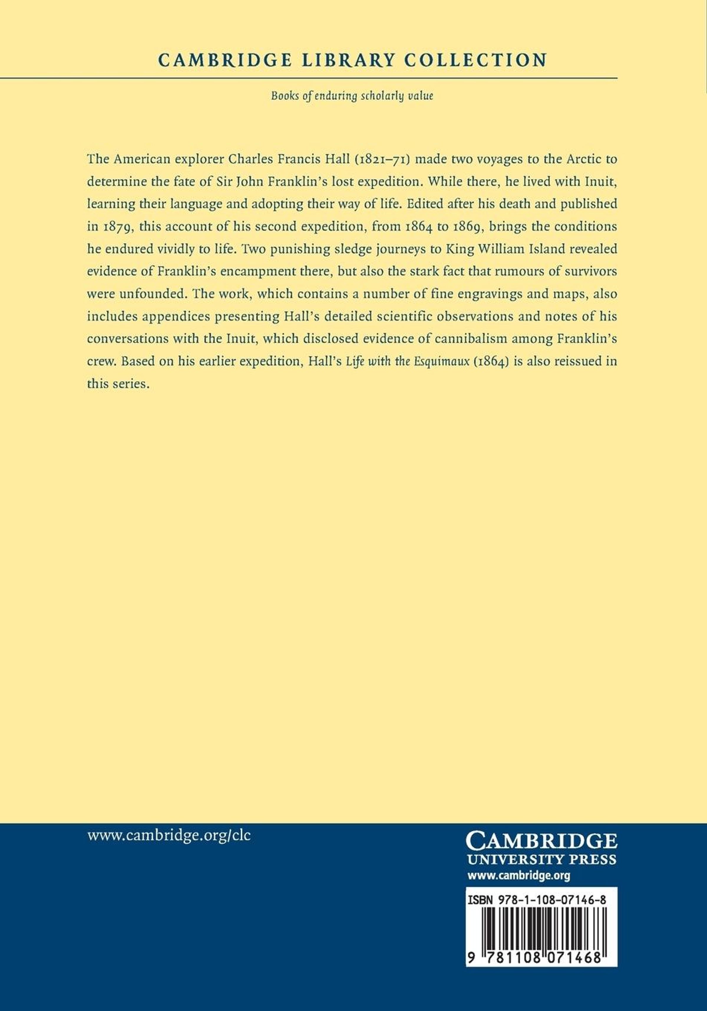 The American explorer Charles Francis Hall (1821-71) made two voyages to the Arctic to determine the fate of Sir John Franklin's lost expedition. While there, he lived with Inuit, learning their language and adopting their way of life. Edited after his death and published in 1879, this account of his second expedition, from 1864 to 1869, brings the conditions he endured vividly to life. Two punishing sledge journeys to King William Island revealed evidence of Franklin's encampment there, but also the stark fact that rumours of survivors were unfounded. The work, which contains a number of fine engravings and maps, also includes appendices presenting Hall's detailed scientific observations and notes of his conversations with the Inuit, which disclosed evidence of cannibalism among Franklin's crew. Based on his earlier expedition, Hall's Life with the Esquimaux (1864) is also reissued in this series.