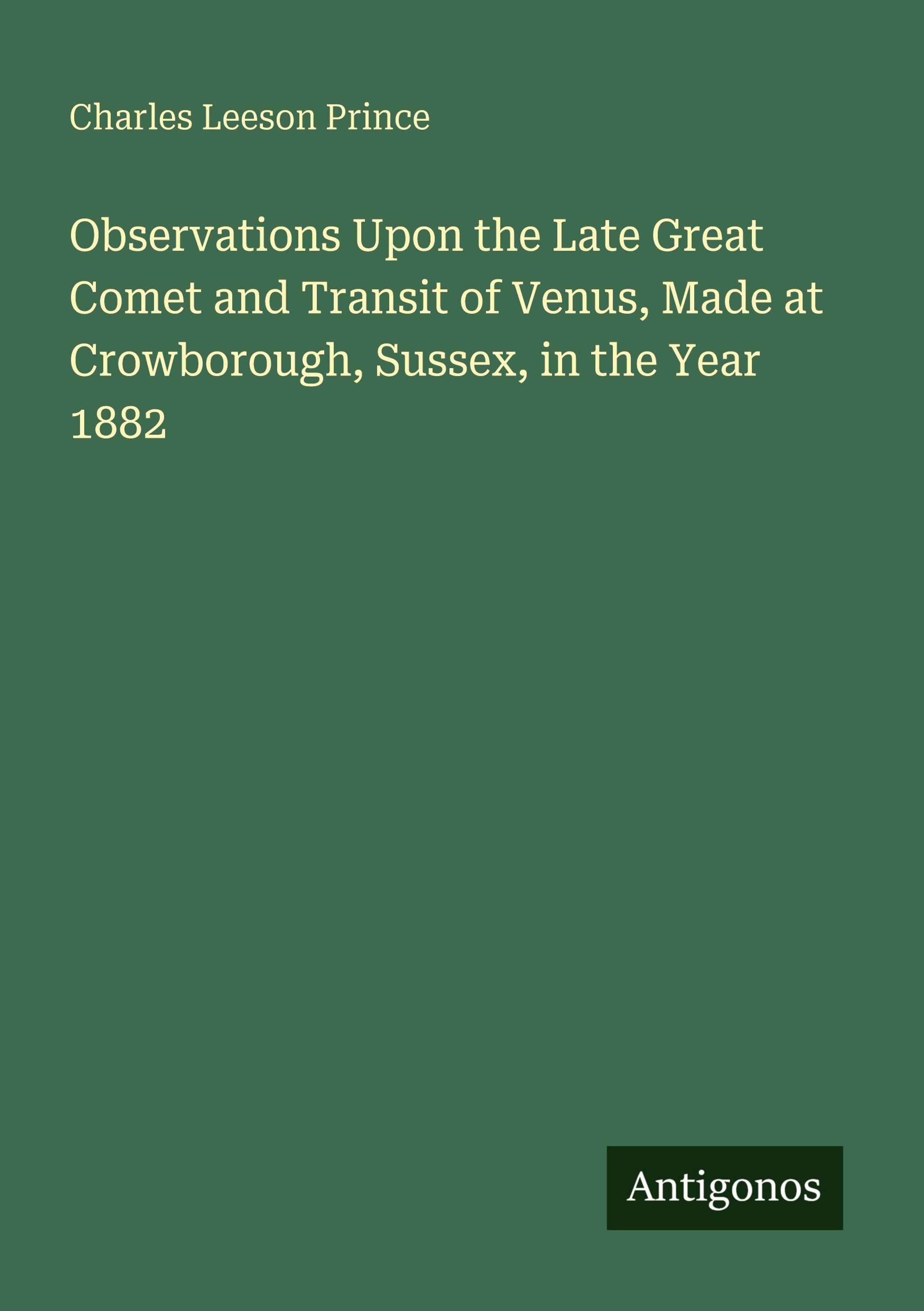 Charles Leeson Prince: Observations Upon the Late Great Comet and Transit of Venus, Made at Crowborough, Sussex,..., Kartoniert / Broschiert