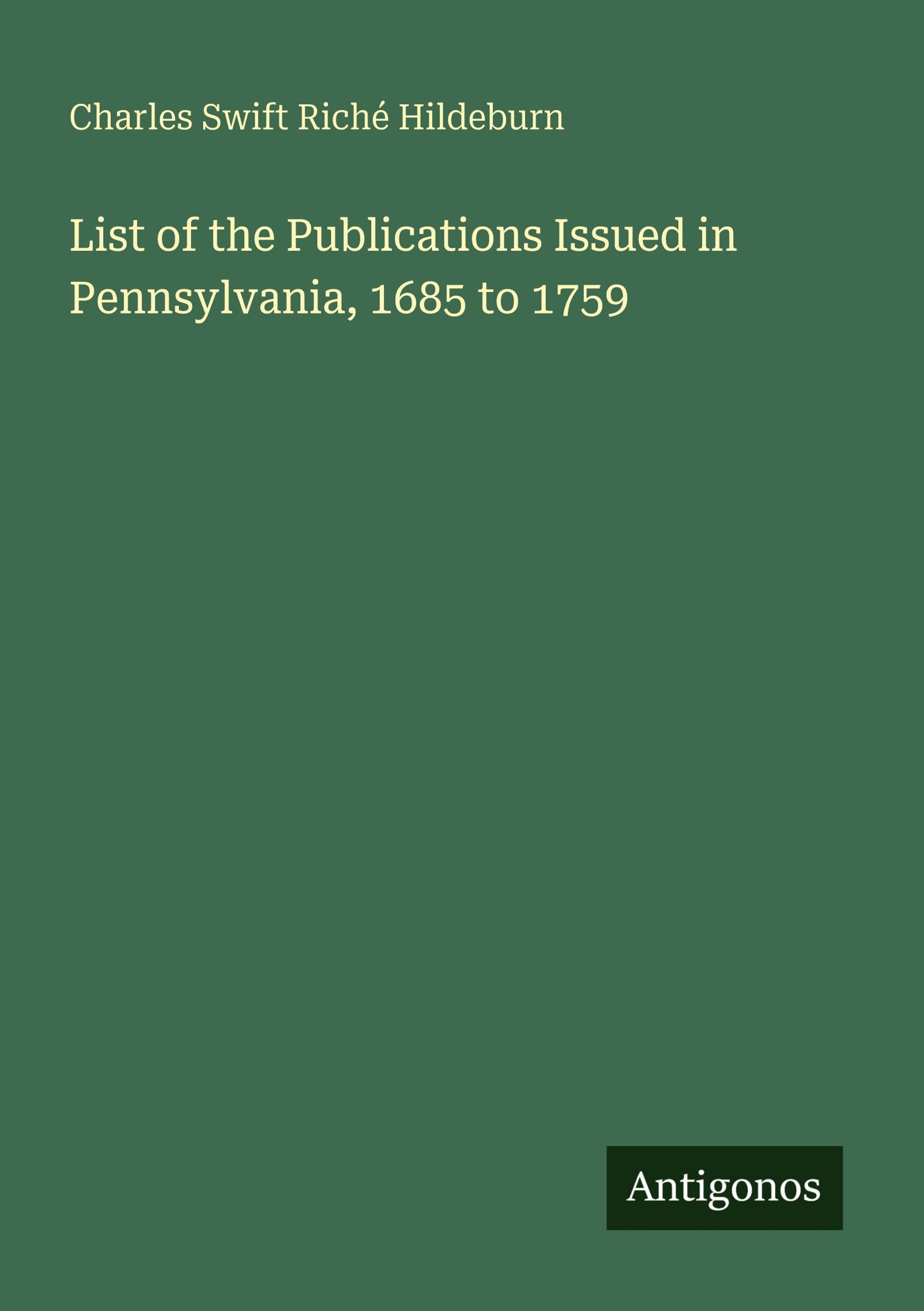 Charles Swift Riché Hildeburn: List of the Publications Issued in Pennsylvania, 1685 to 1759, Kartoniert / Broschiert