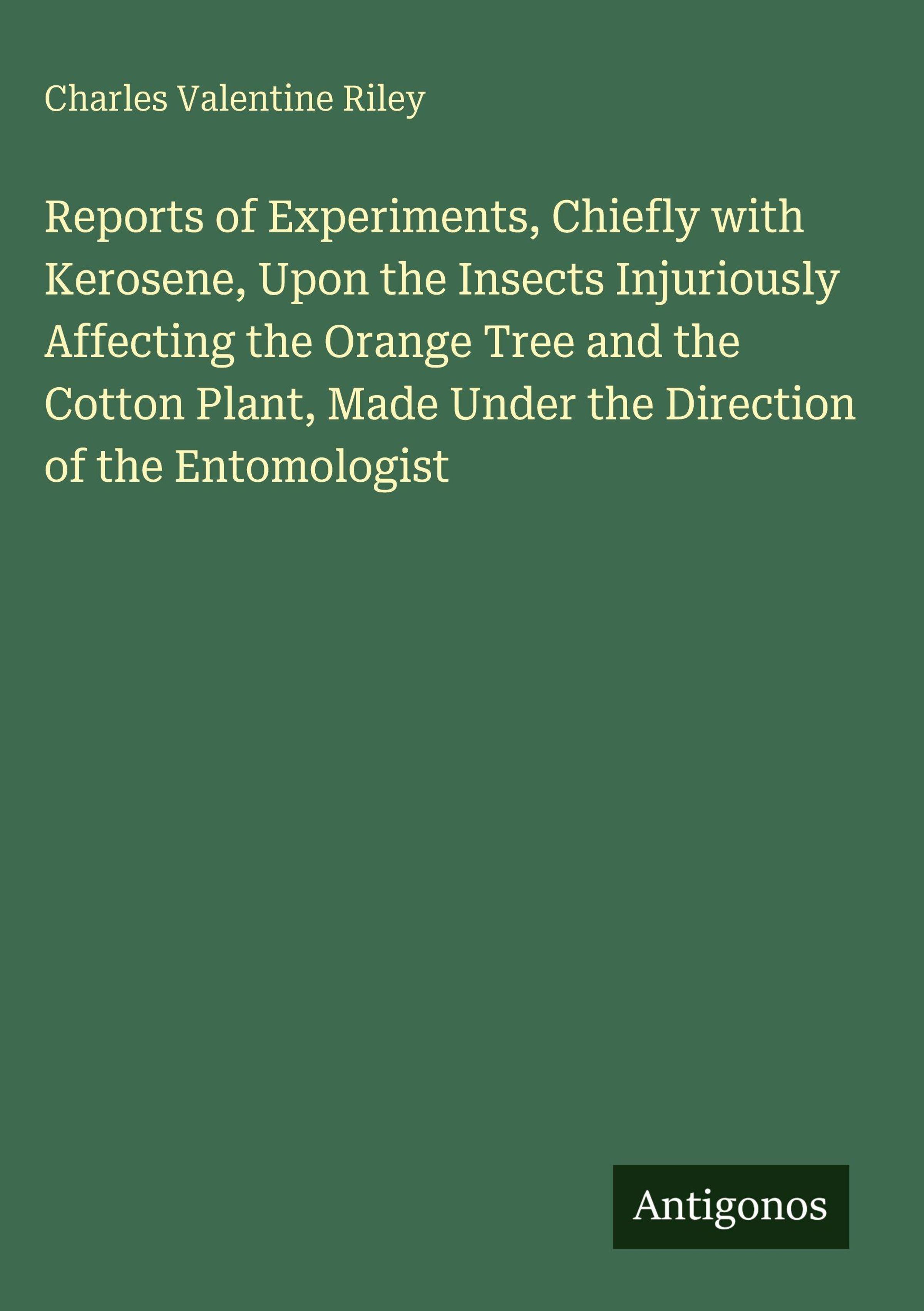 Charles Valentine Riley: Reports of Experiments, Chiefly with Kerosene, Upon the Insects Injuriously Affecting..., Gebunden