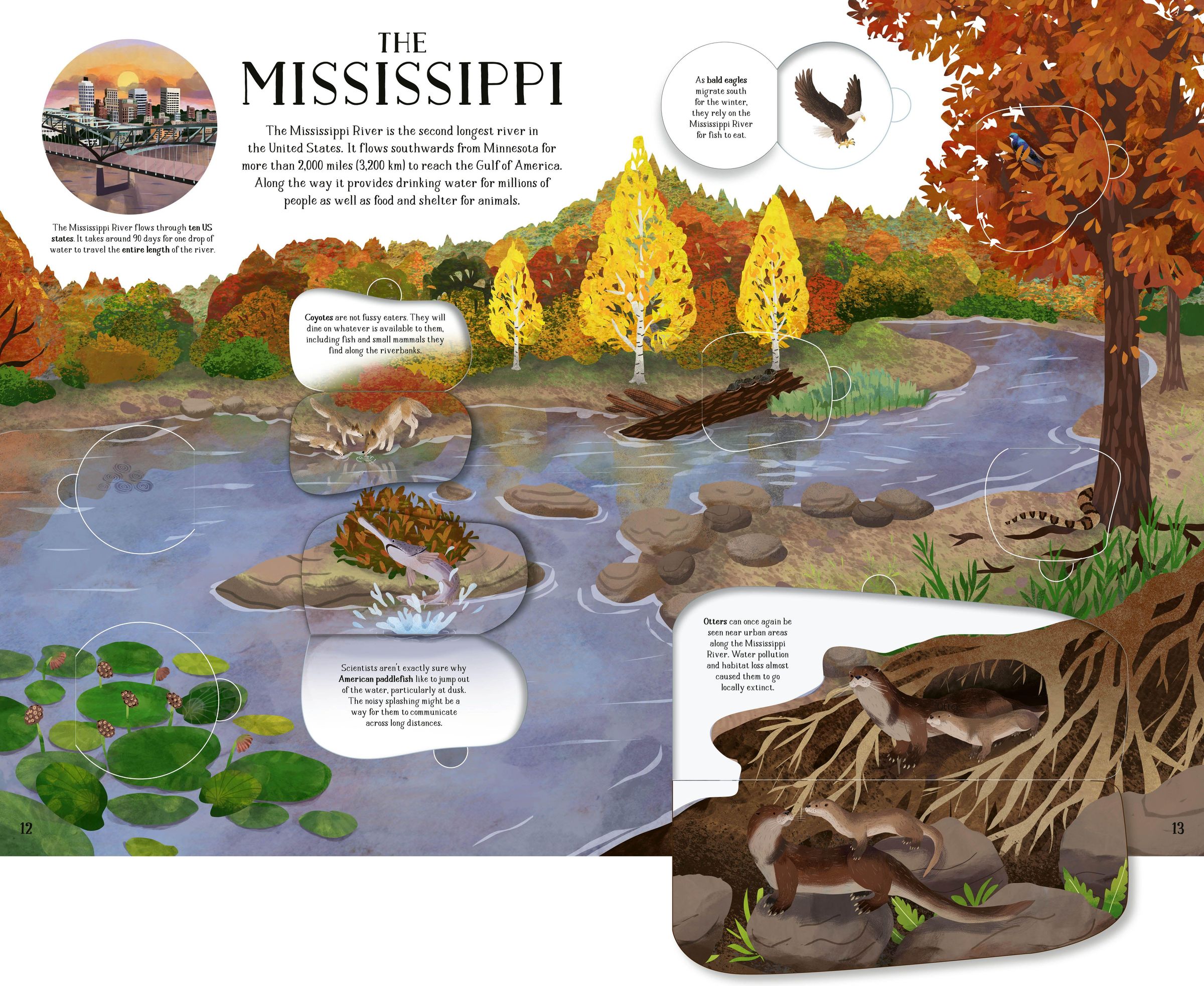 The book introduces famous rivers around the world, including the Mississippi and the otters that roam its banks, and the endangered dolphins that call the River Ganges home. Readers will also meet the birds that rely on rivers for food during their epic migrations and discover the significance of the Nile River in Ancient Egyptian mythology.