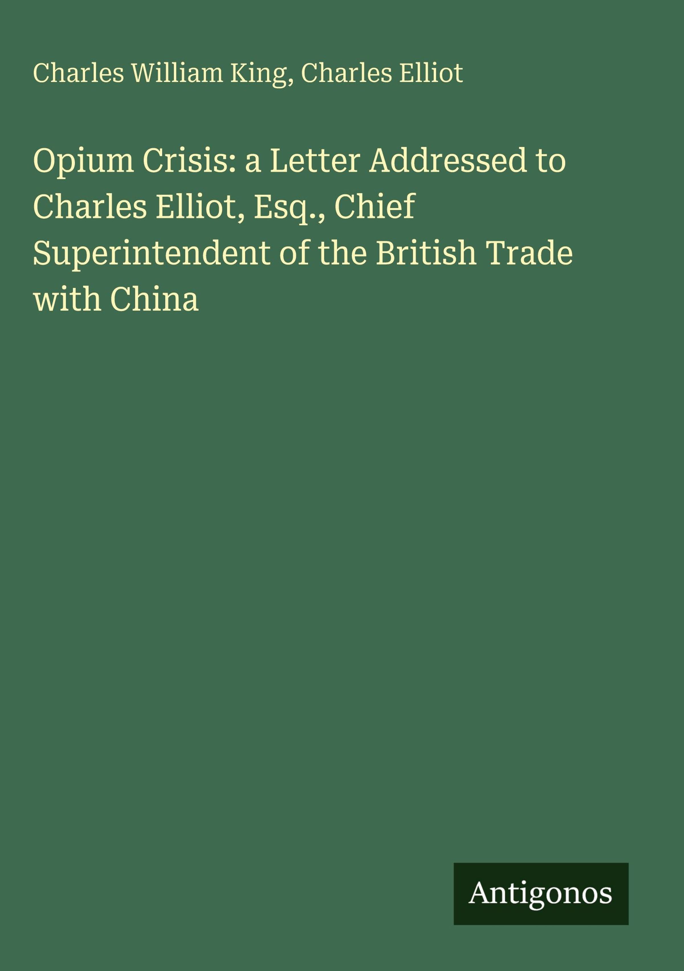 Opium Crisis: a Letter Addressed to Charles Elliot, Esq., Chief Superintendent of the British Trade with China
