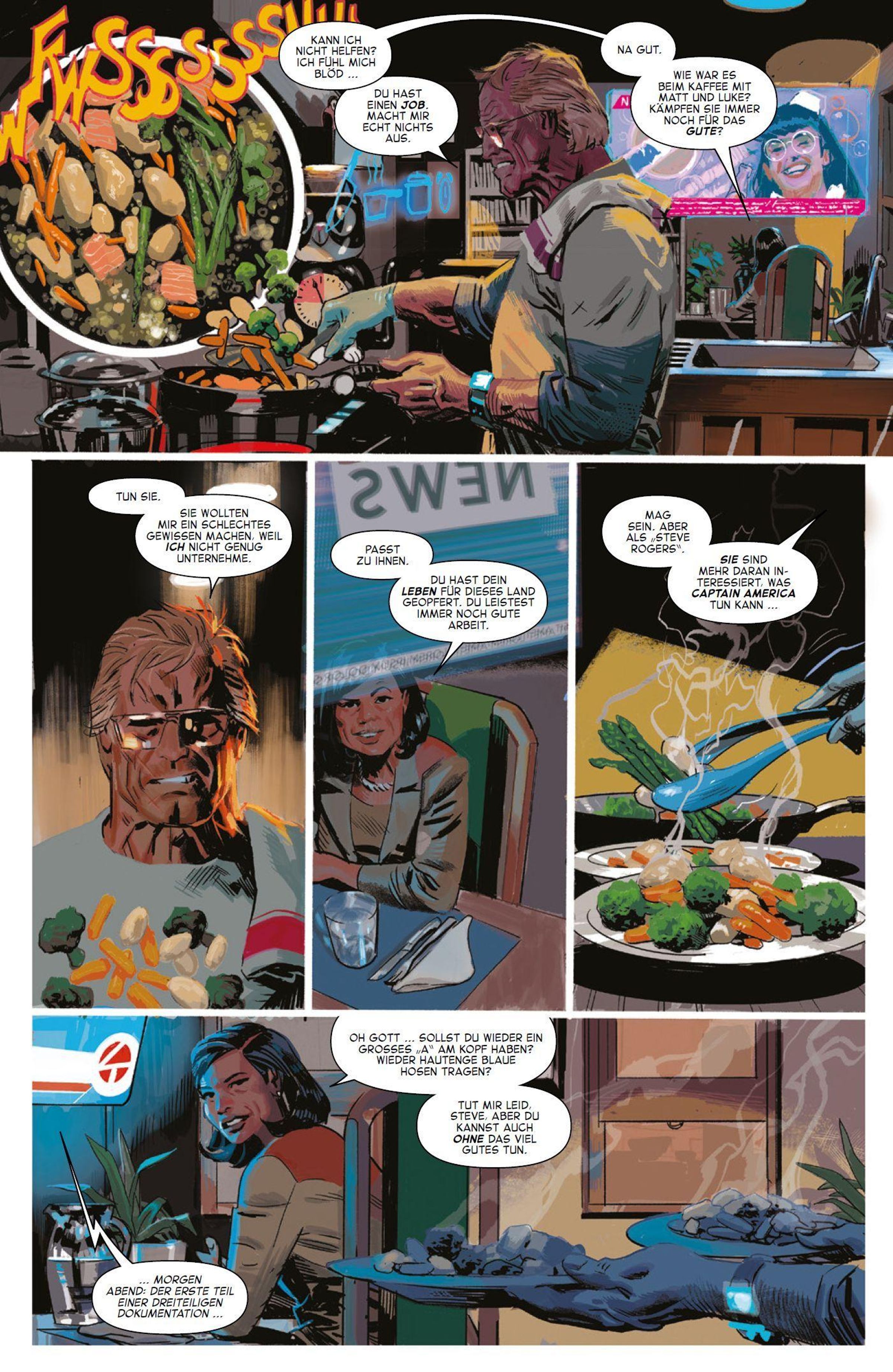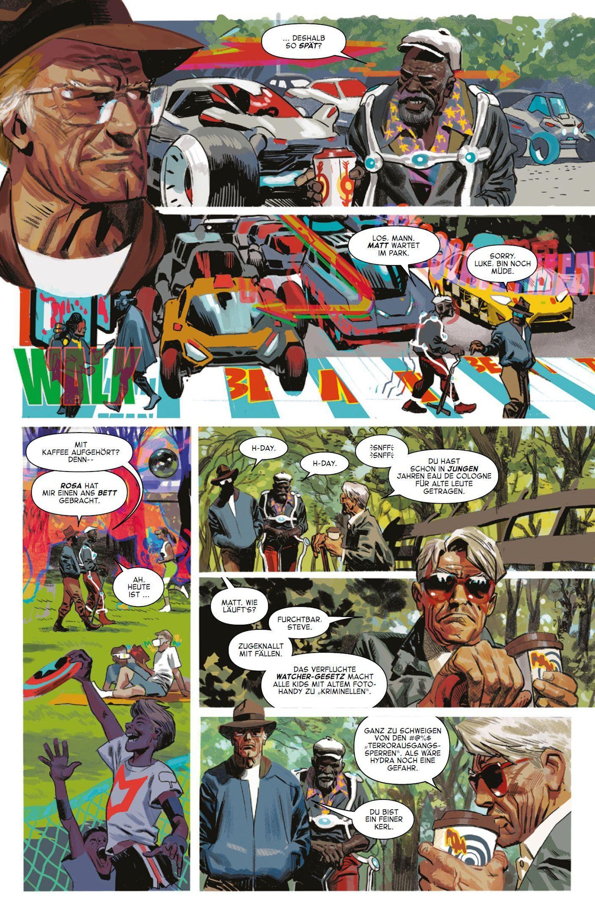 DIE LEGENDE SCHLÄGT ZURÜCK ... In den USA der Zukunft herrschen Überwachung und Unterdrückung. Steve Rogers sieht, dass sein Land ihn braucht. Doch Captain America ist inzwischen ein alter Mann und trägt kein Supersoldaten-Serum mehr in sich. Trotzdem will er die Unschuldigen beschützen und seine vom Bösen korrumpierte Nation retten. Und so kehrt Cap zurück und stellt sich dem Kampf - und er schlägt diese Schlacht nicht allein.