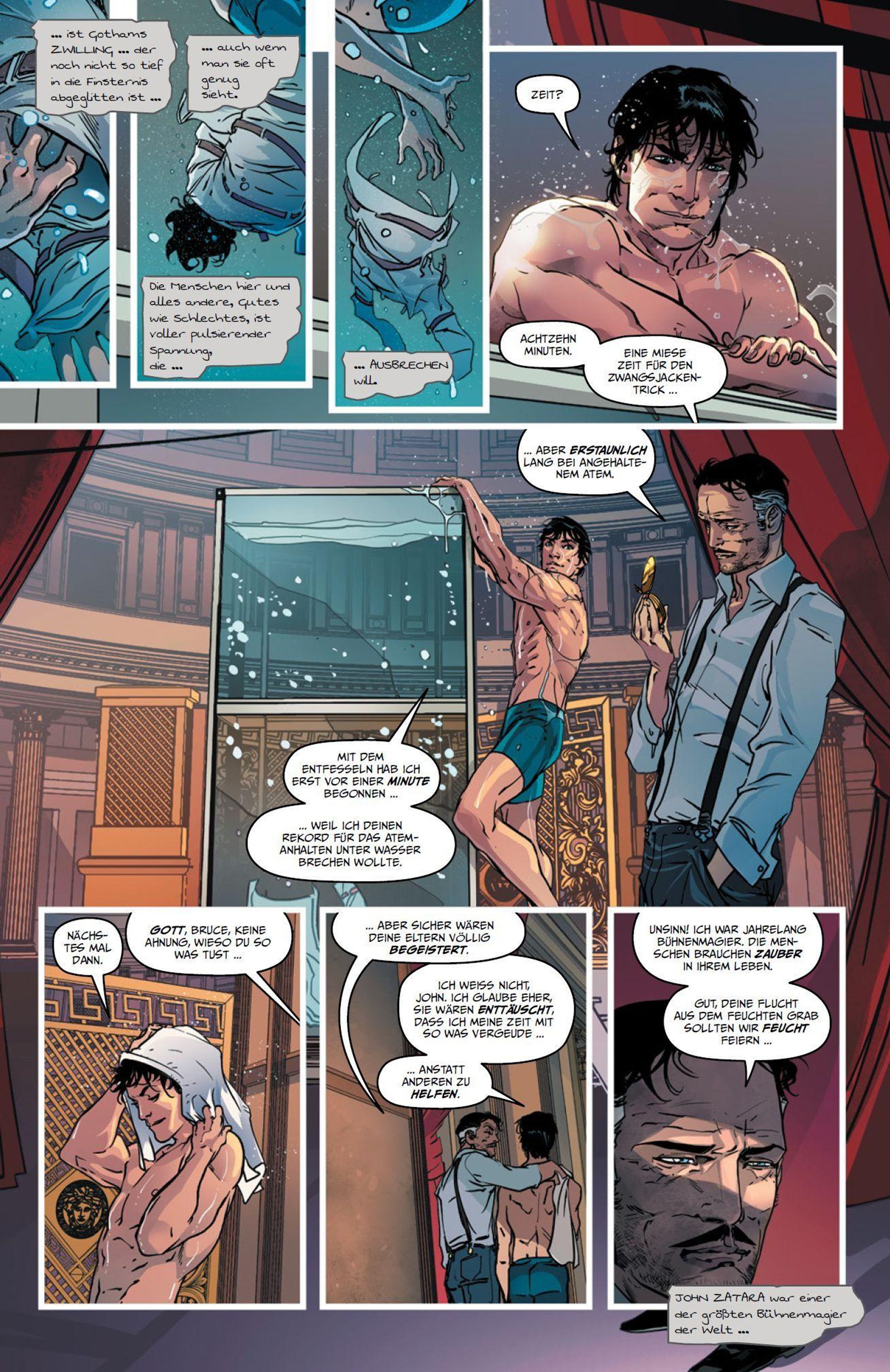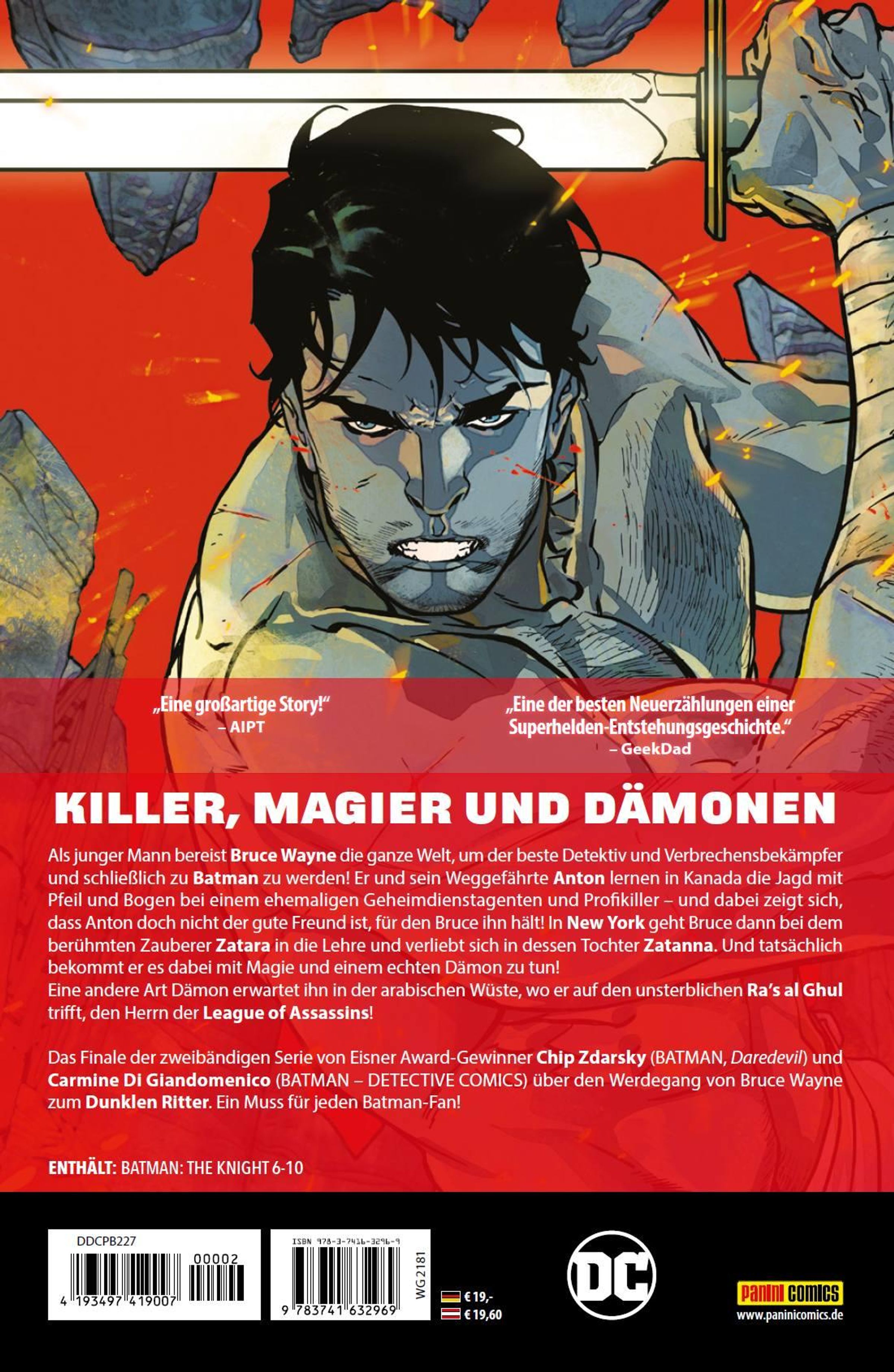KILLER, MAGIER UND DÄMONEN Als junger Mann bereist Bruce Wayne die ganze Welt, um der beste Detektiv und Verbrechensbekämpfer und schließlich zu Batman zu werden! Er und sein Weggefährte Anton lernen in Kanada die Jagd mit Pfeil und Bogen bei einem ehemaligen Geheimdienstagenten und Profikiller - und dabei zeigt sich, dass Anton doch nicht der gute Freund ist, für den Bruce ihn hält! In New York geht Bruce dann bei dem berühmten Zauberer Zatara in die Lehre und verliebt sich in dessen Tochter Zatanna. Und tatsächlich bekommt er es dabei mit Magie und einem echten Dämon zu tun! Eine andere Art Dämon erwartet ihn in der arabischen Wüste, wo er auf den unsterblichen Ra's al Ghul trifft, den Herrn der League of Assassins!