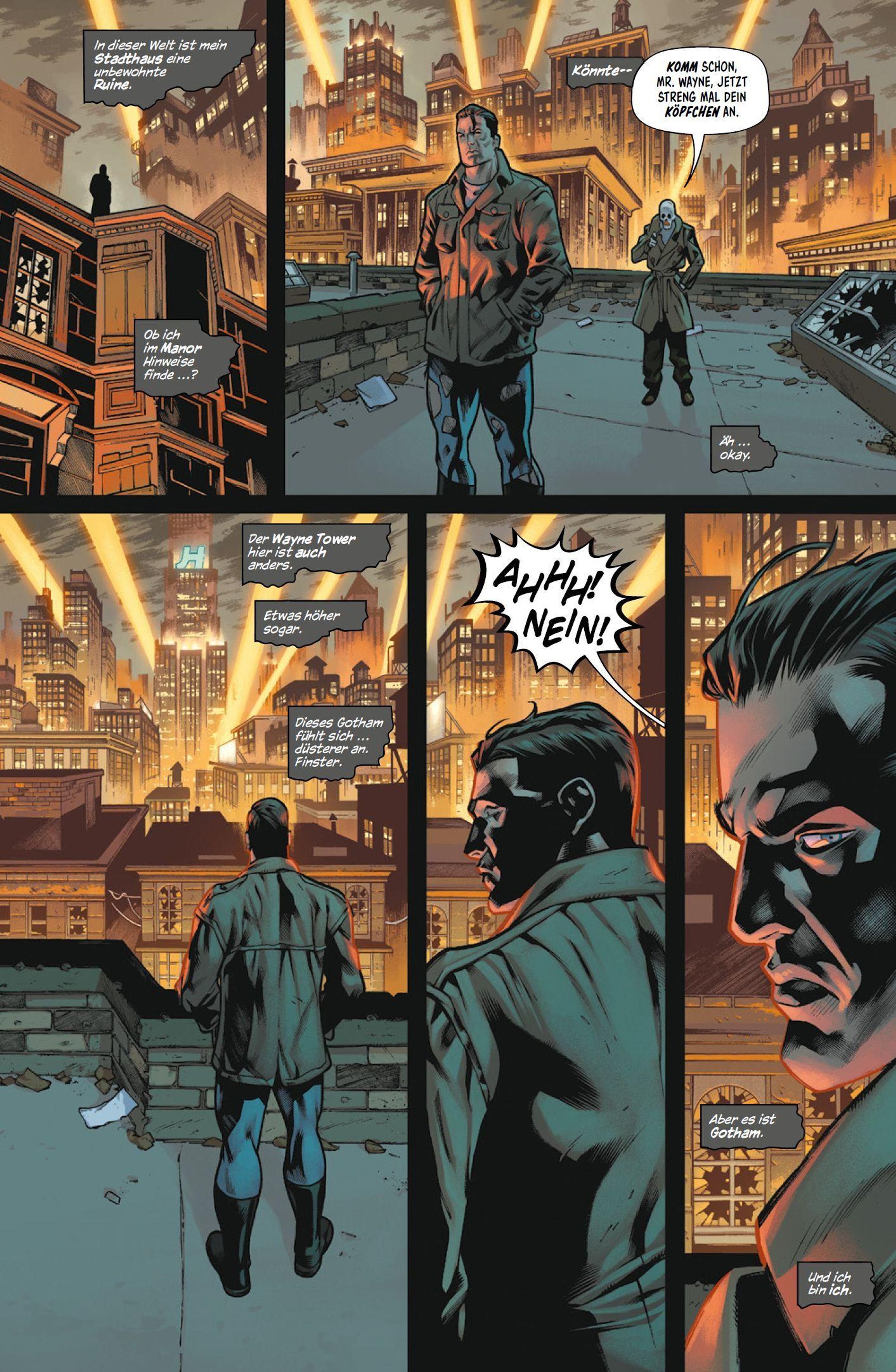 EIN GOTHAM OHNE HOFFNUNG Bruce Wayne strandet im Gotham City einer anderen Realität. In dieser Stadt ohne Hoffnung regiert das Verbrechen. Alle tanzen nach der Pfeife des unaufhaltsamen Superschurken Red Mask - auch Selina Kyle. Batman versucht, die Geheimnisse dieses gefährlichen Gothams zu ergründen - und es zu retten. Unterdessen sucht Robin in den Weiten des Multiversums nach seinem tot geglaubten Mentor.