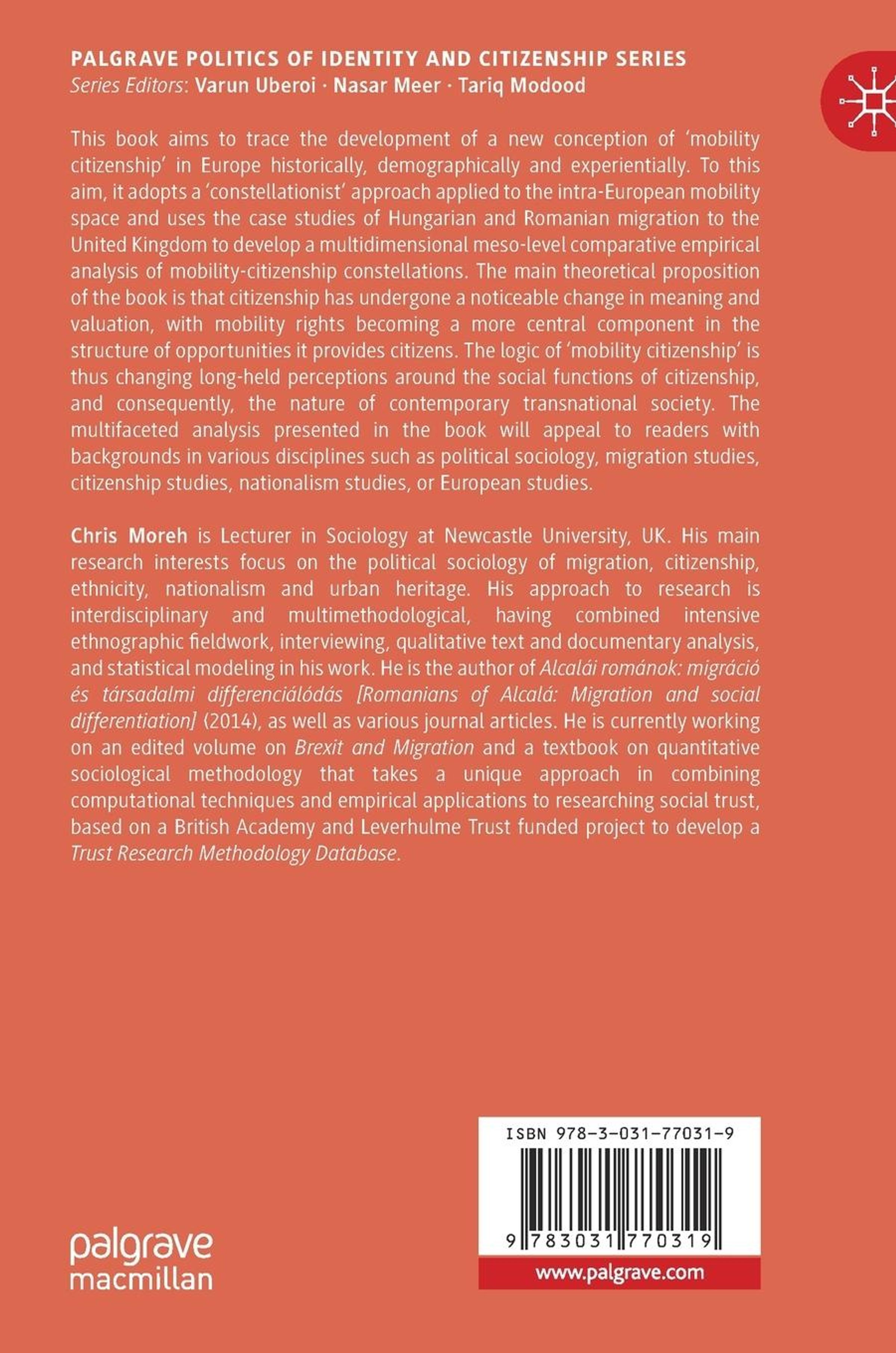 This book aims to trace the development of a new conception of 'mobility citizenship' in Europe historically, demographically and experientially. To this aim, it adopts a 'constellationist' approach applied to the intra-European mobility space and uses the case studies of Hungarian and Romanian migration to the United Kingdom to develop a multidimensional meso-level comparative empirical analysis of mobility-citizenship constellations. The main theoretical proposition of the book is that citizenship has undergone a noticeable change in meaning and valuation, with mobility rights becoming a more central component in the structure of opportunities it provides citizens. The logic of 'mobility citizenship' is thus changing long-held perceptions around the social functions of citizenship, and consequently, the nature of contemporary transnational society. The multifaceted analysis presented in the book will appeal to readers with backgrounds in various disciplines such as political sociology, migration studies, citizenship studies, nationalism studies, or European studies.