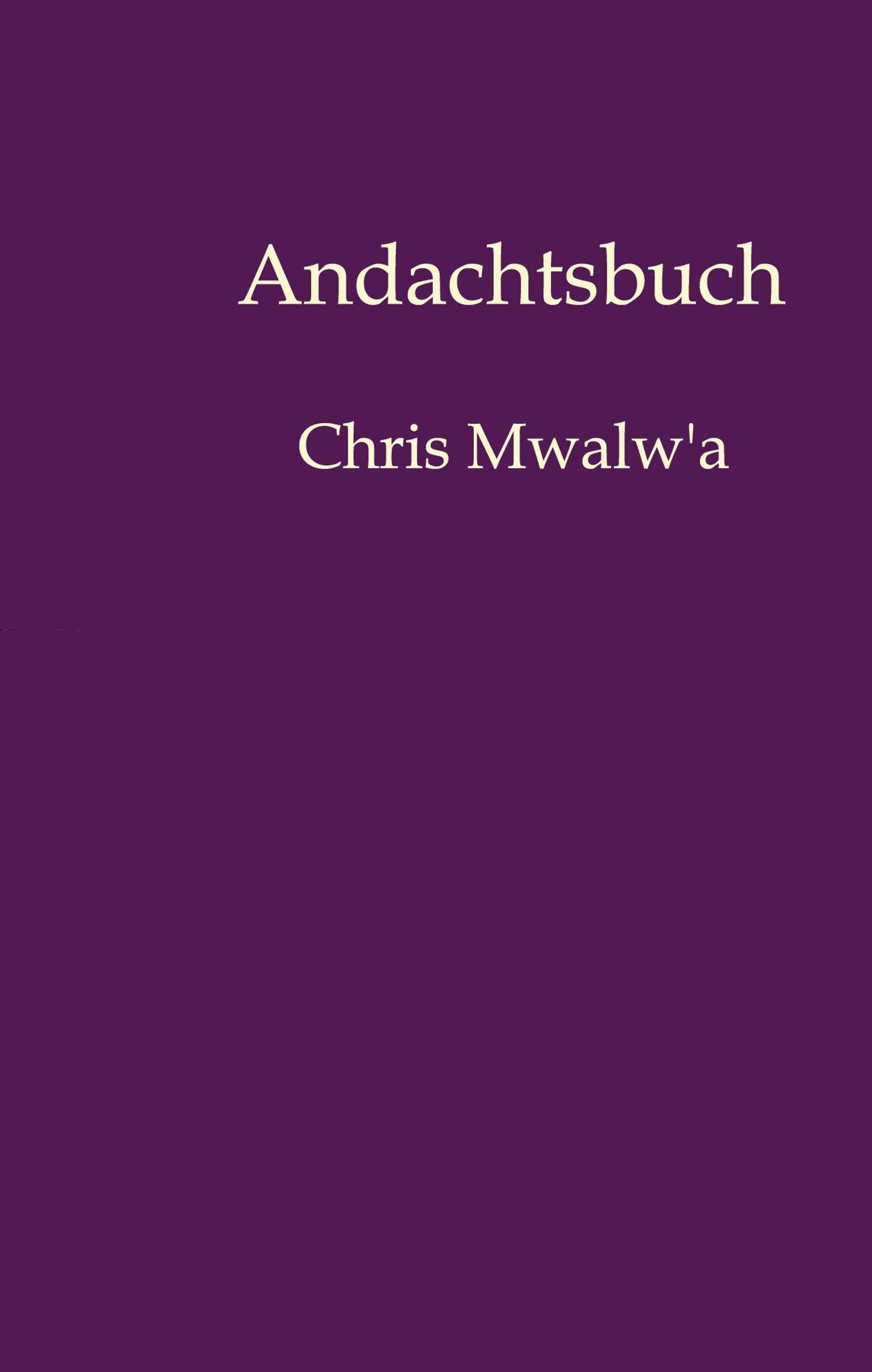 "Andachtsbuch" und "Chris Mwalw'a" sind in heller Schrift auf lila Hintergrund zu sehen., Buch