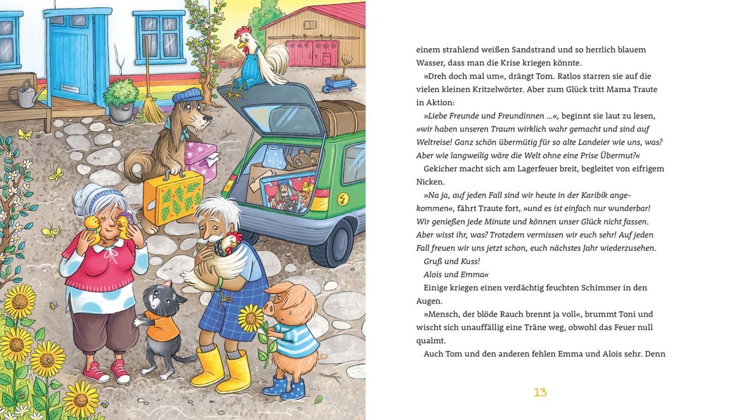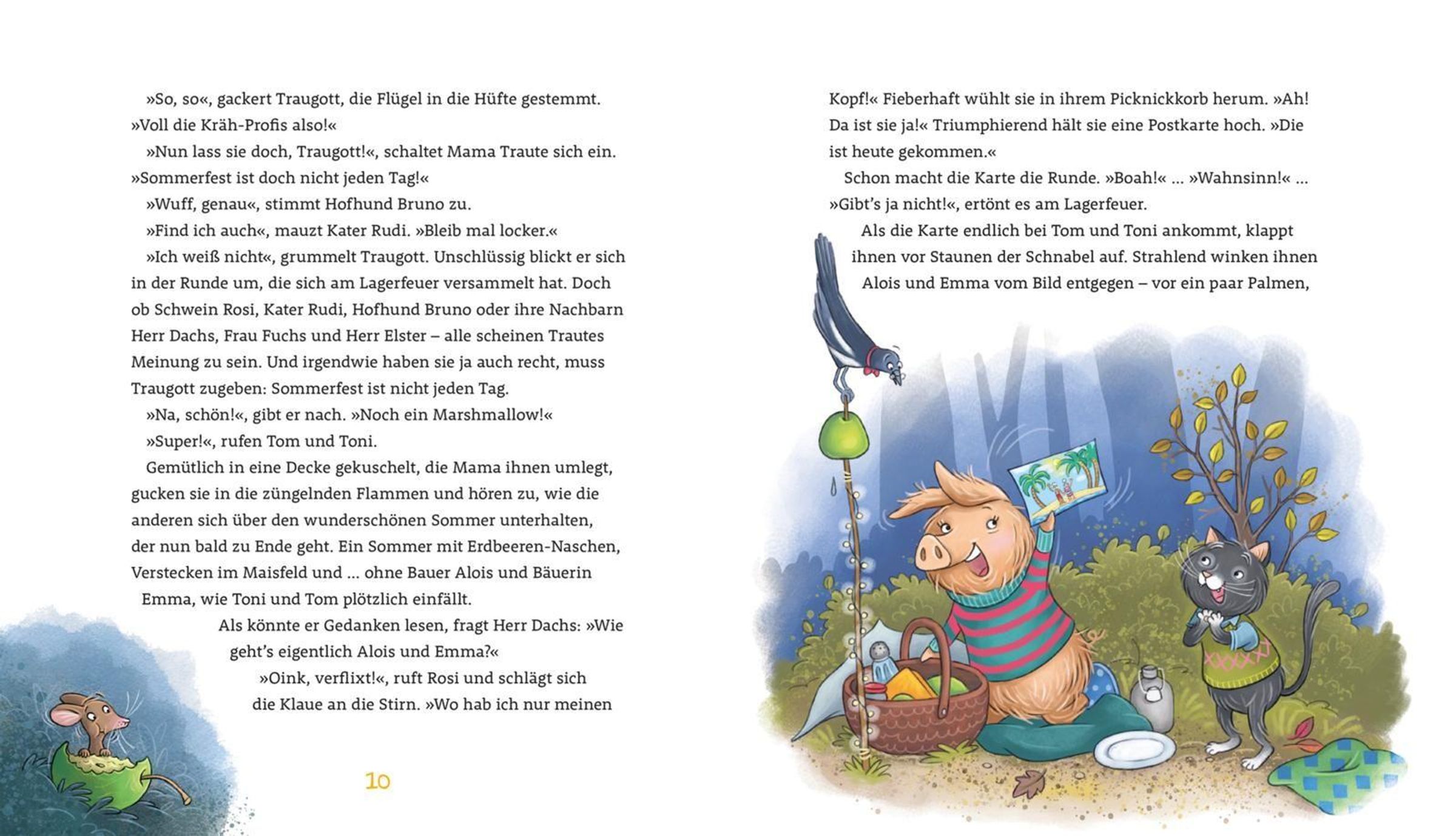 Sie machen all das, was man halt so macht auf einem Bauernhof: Obst und Gemüse anbauen, Heu ernten, die Speisekammer für den Winter füllen, Picknick auf den Wiesen, Lagerfeuer mit Marshmallows - und: Streiche spielen. Jedenfalls Tom und Toni. Die erwachsenen Tiere tun das eher nicht.
