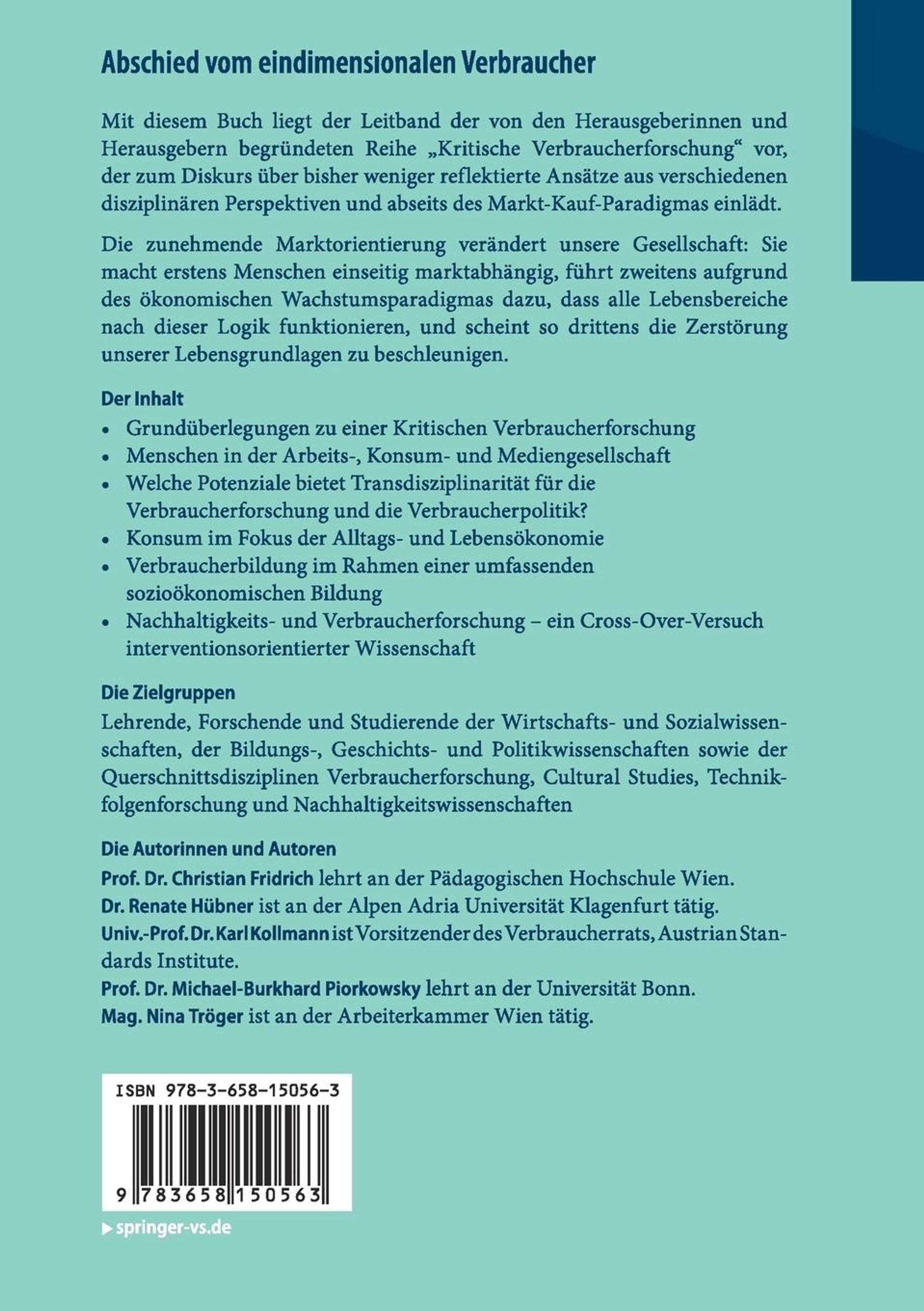 Mit diesem Buch liegt der Leitband der von den Herausgeberinnen und Herausgebern begründeten Reihe Kritische Verbraucherforschung vor, der zum Diskurs über bisher weniger reflektierte Ansätze aus verschiedenen disziplinären Perspektiven und abseits des Markt-Kauf-Paradigmas einlädt. Die zunehmende Marktorientierung verändert unsere Gesellschaft: Sie macht erstens Menschen einseitig marktabhängig, führt zweitens aufgrund des ökonomischen Wachstumsparadigmas dazu, dass alle Lebensbereiche nach dieser Logik funktionieren, und scheint so drittens die Zerstörung unserer Lebensgrundlagen zu beschleunigen.