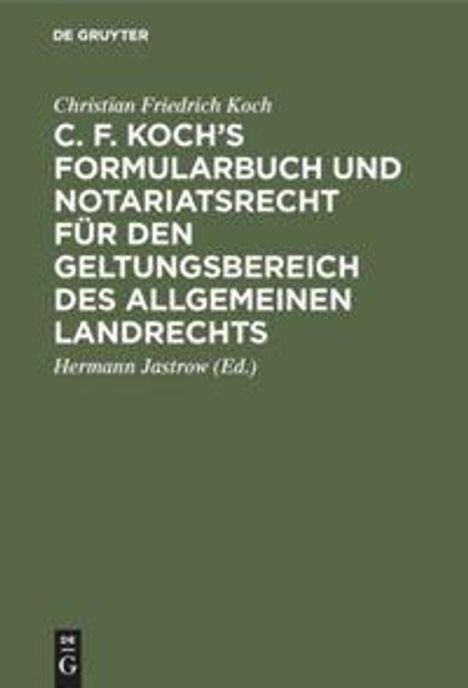 C. F. Koch's Formularbuch und Notariatsrecht für den Geltungsbereich des Allgemeinen Landrechts