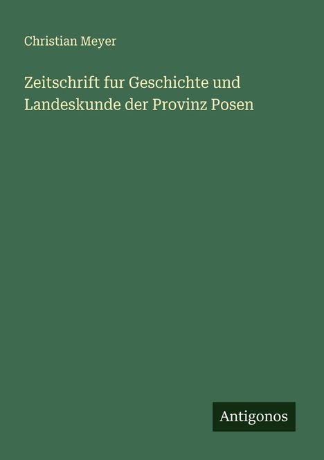 Christian Meyer: Zeitschrift fur Geschichte und Landeskunde der Provinz Posen, Kartoniert / Broschiert