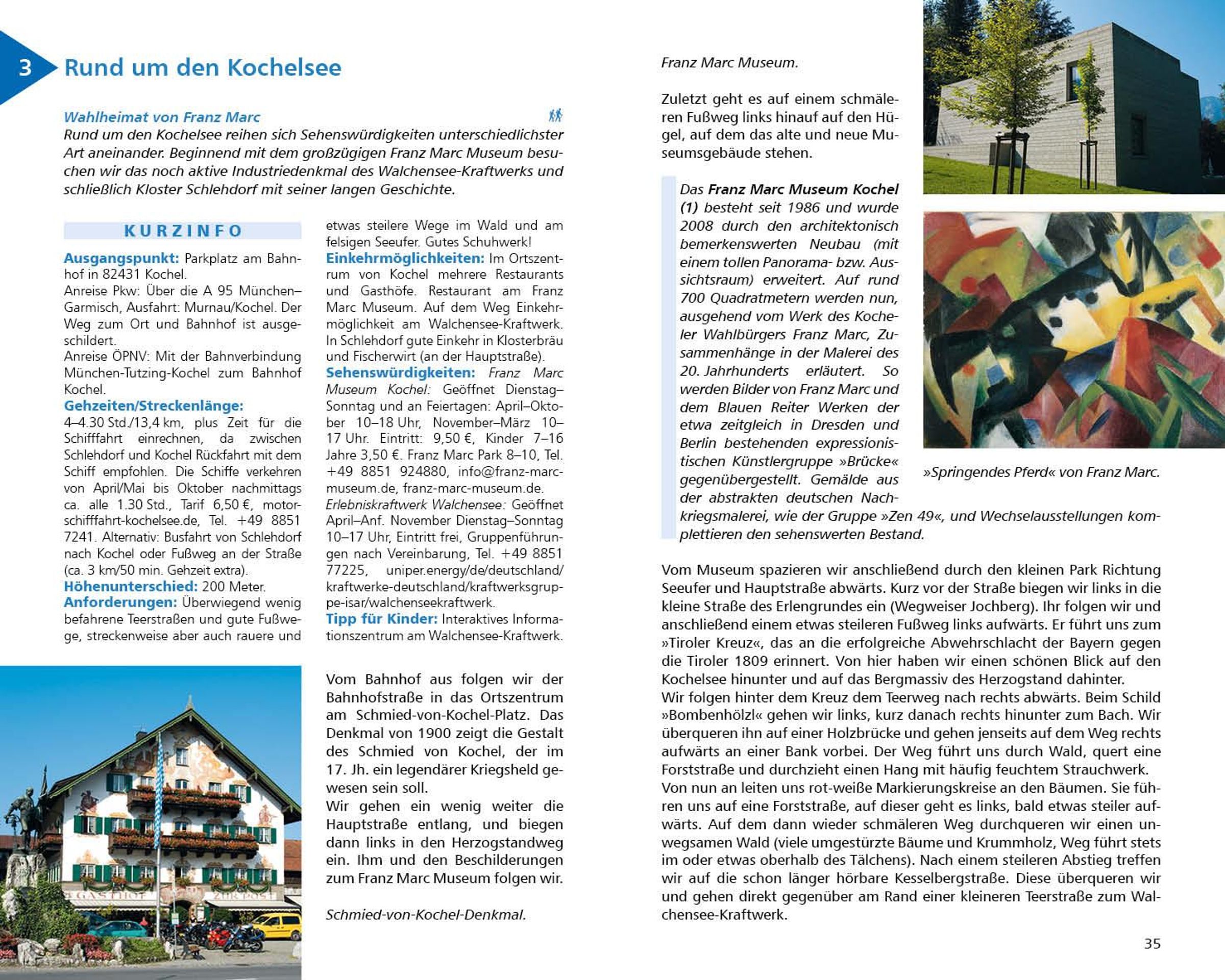 Christian Rauch, im Blauen Land nahe Murnau aufgewachsen, führt auf 25 Touren zu Kulturdenkmälern, Schlössern und Museen. Ortsrundgänge, großartige Wanderungen im Isar- und Loisachtal, Traumrunden entlang der Seen sowie alpine Touren hinauf zu den Jagdhäusern König Ludwigs verbinden Natur und Kultur auf unvergleichliche Weise. Die Touren sind zuverlässig beschrieben, verfügen über Karten mit Routeneintrag und aussagekräftige Höhenprofile. GPS-Daten stehen zum Download bereit. Zahlreiche Infos im Buch bieten Hintergrundwissen zu Sehenswürdigkeiten und Besonderheiten der einzelnen Touren.