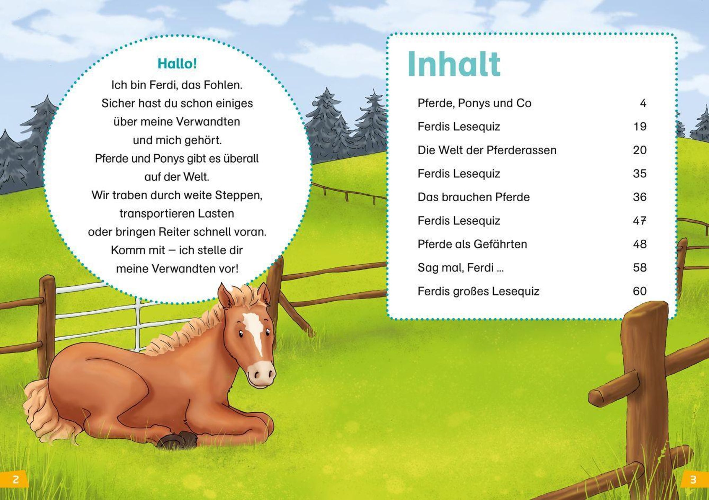 Fohlen galoppieren ausgelassen über die Weide. Im Reitstall werden die Pferde versorgt und für den Ausritt vorbereitet. Die gutmütigen Ponys sind besonders bei Reitanfängern beliebt... Die Reihe "WAS IST WAS Erstes Lesen" bietet durch die große Fibelschrift und die kurzen Textabschnitten eine ideale Hinführung zum selbständigen Lesen. Leseanfänger haben so die Möglichkeit, sich ihr Lieblingssachthema selbst Stück für Stück zu erschließen. Für Spaß und Unterhaltung sorgen in diesem Band Ferdi, das Fohlen, das die Kinder durch das Buch begleitet und verschiedene Lesequiz.