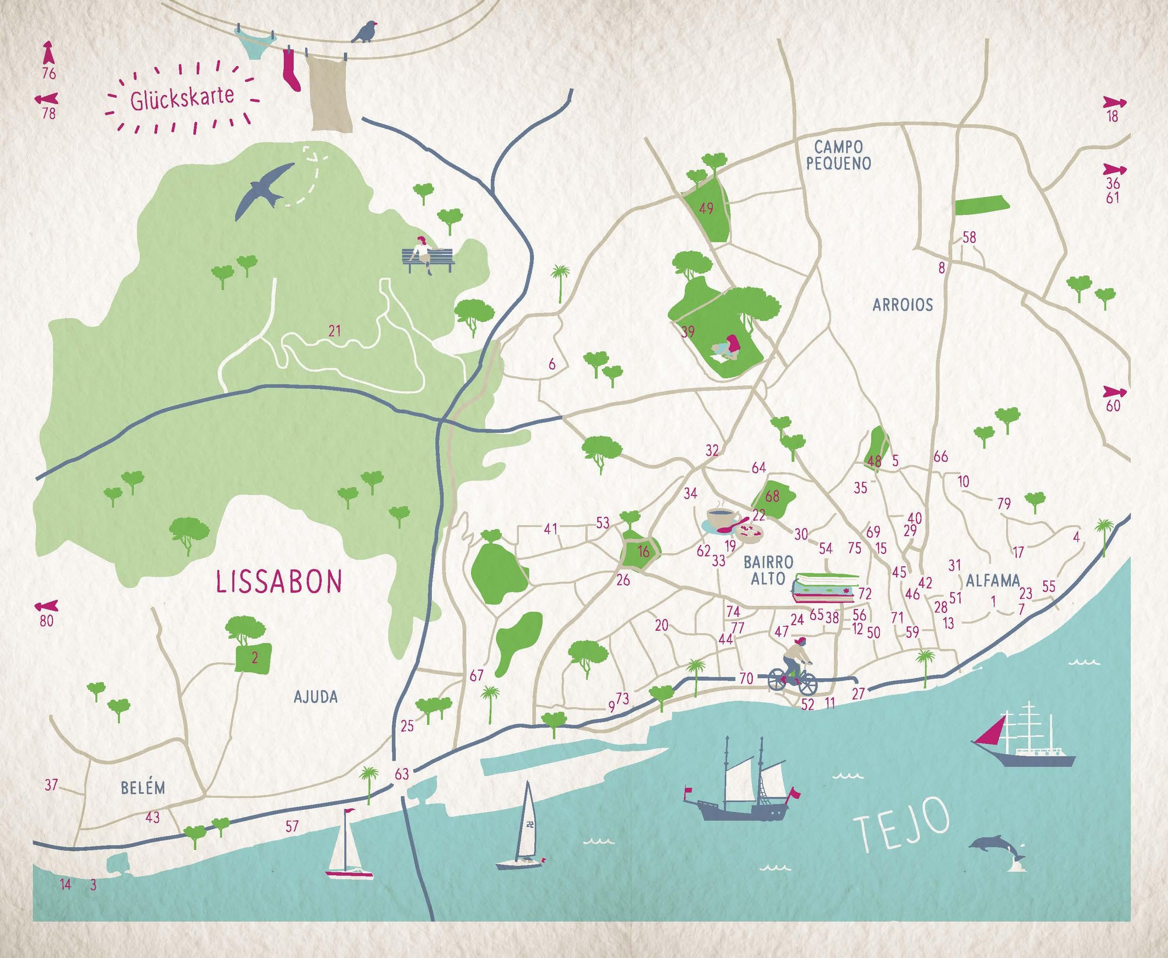 Verschlungene Kopfsteinpflastergassen, bunte Kacheln an Hauswänden, Pastéis de Nata in der Sonne - das ist Lissabon. Doch in Portugals Hauptstadt gibt es noch viel mehr zu entdecken: urige Restaurants, moderne Museen, romantische Parks und atemberaubende Aussichtspunkte. Glücksuchende ruckeln hier gemütlich mit der alten Straßenbahn durch die Stadt, radeln zur längsten Brücke Europas, speisen in einer Zirkusschule und stöbern in der ältesten Buchhandlung der Welt.