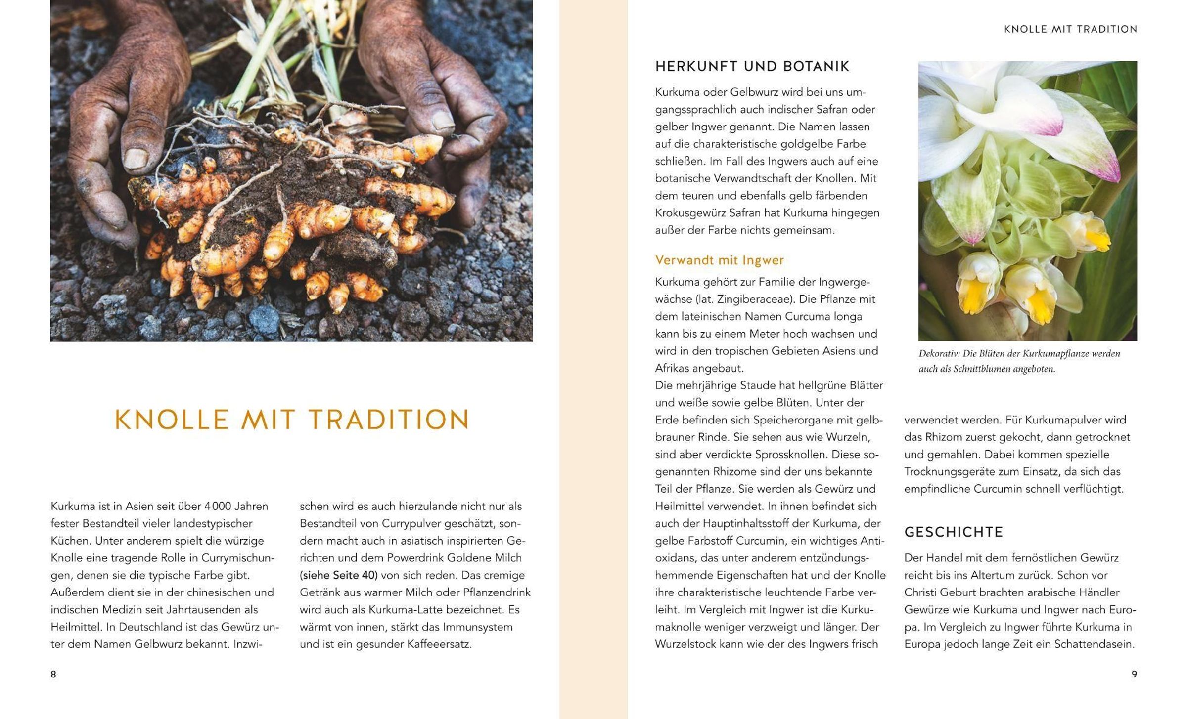 Ein Löffelchen Kurkumapulver - und schon verwandeln sich Currys und Reis, ja selbst Milch und Eis in eine goldgelbe Herrlichkeit. Doch die trendige Powerwurzel kann mehr als nur Farbe und Aroma. Ihre inneren Werte machen sie seit Jahrtausenden zu Asiens Geheimzutat in Küche und ayurvedischer Heilkunst. Wärmend, reinigend und belebend bringt der würzige Allrounder Immunsystem und Stoffwechsel auf Touren und stärkt die Organe. Ganz aktuell: Die moderne Medizin entdeckt und empfiehlt die entzündungs-hemmende Wirkung des Curcumin bei Rheuma und Arthritis, Hauterkrankungen und Ausschläge. Selbst gegen Alzheimer und Krebs soll das wohlschmeckende Naturheilmittel präventiv wirken. Für die gesunde Genussküche ist Kurkuma einfach die goldrichtige Wahl. Neben den spannenden Basisinformationen zeigen 45 Wohlfühlrezepte die Vielseitigkeit von Kurkuma, das würzt, färbt und gut tut in Tees, saftigen Currys, stärkenden Suppen, farbenfrohen Bowls und goldgelbem Eis.