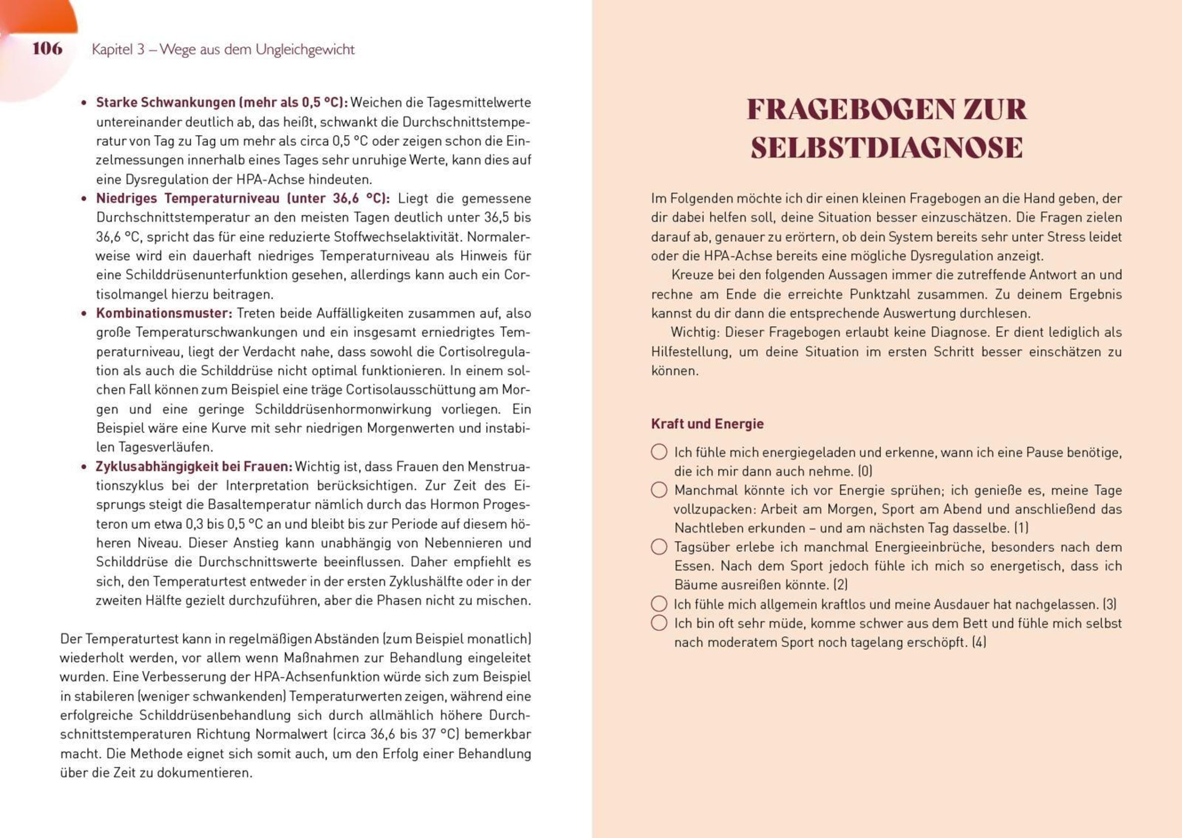 Die Molekularmedizinerin Dr. Christina Winzig zeigt Ihnen einen alltagstauglichen Weg, um Ihren Cortisolspiegel natürlich zu regulieren. Zunächst hilft Ihnen ein Fragebogen zur Selbstdiagnose dabei, ein mögliches Cortisolungleichgewicht zu erkennen. Dann lernen Sie mit ihrem wissenschaftlich fundierten Ansatz: