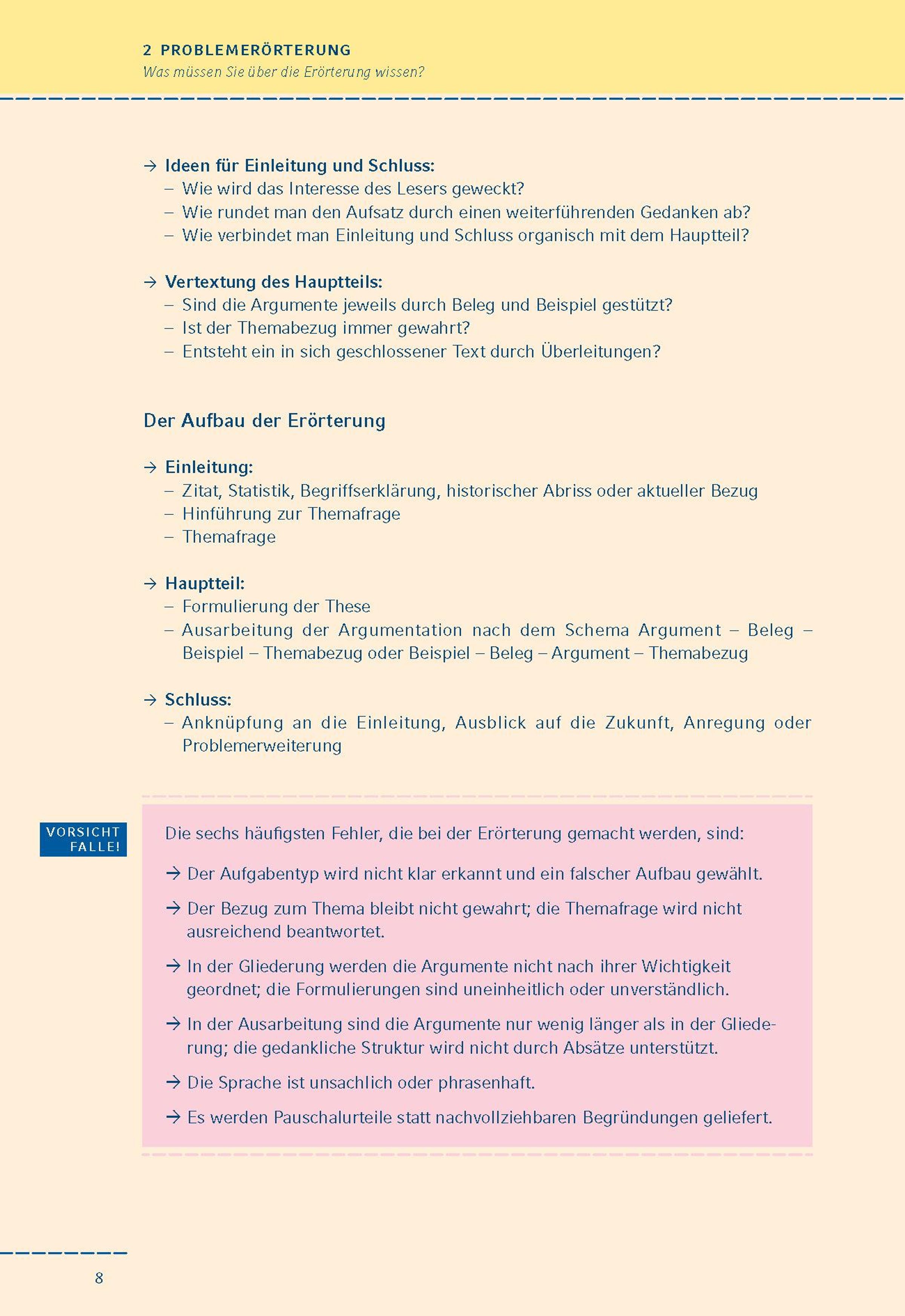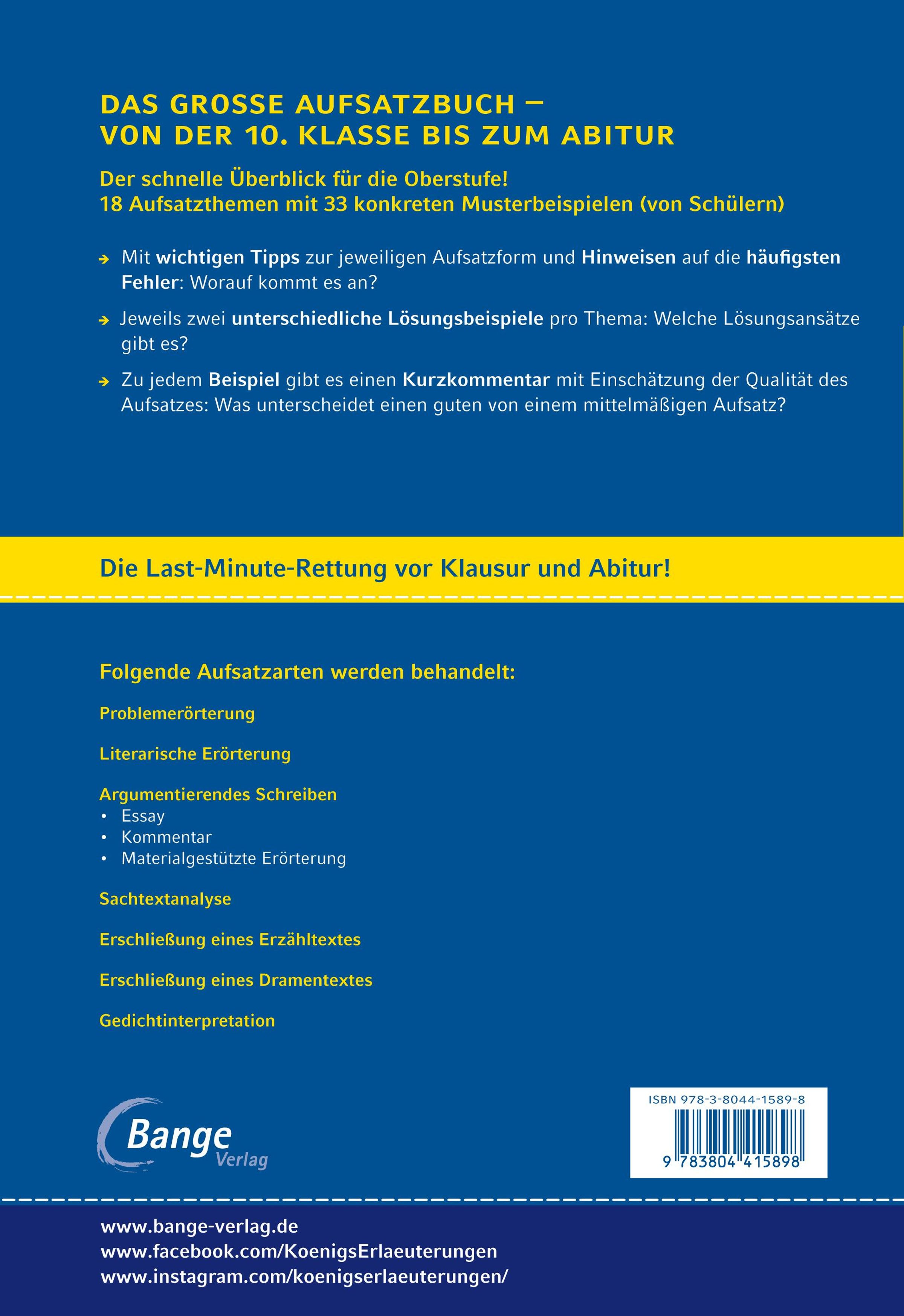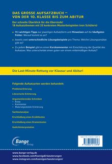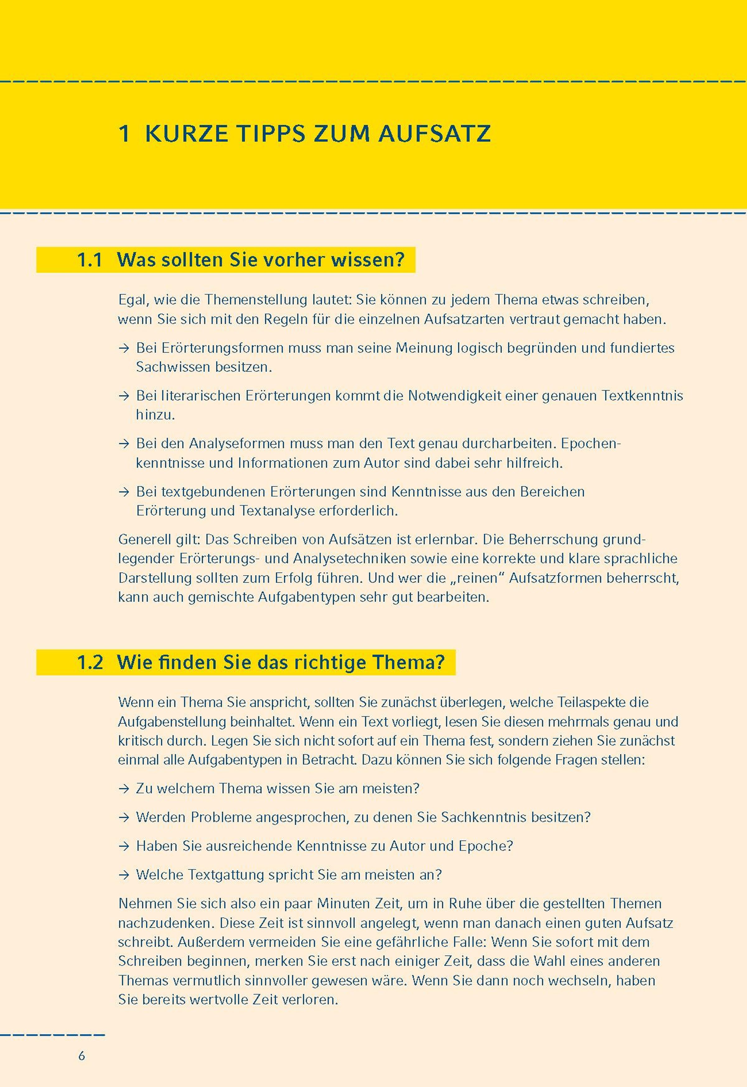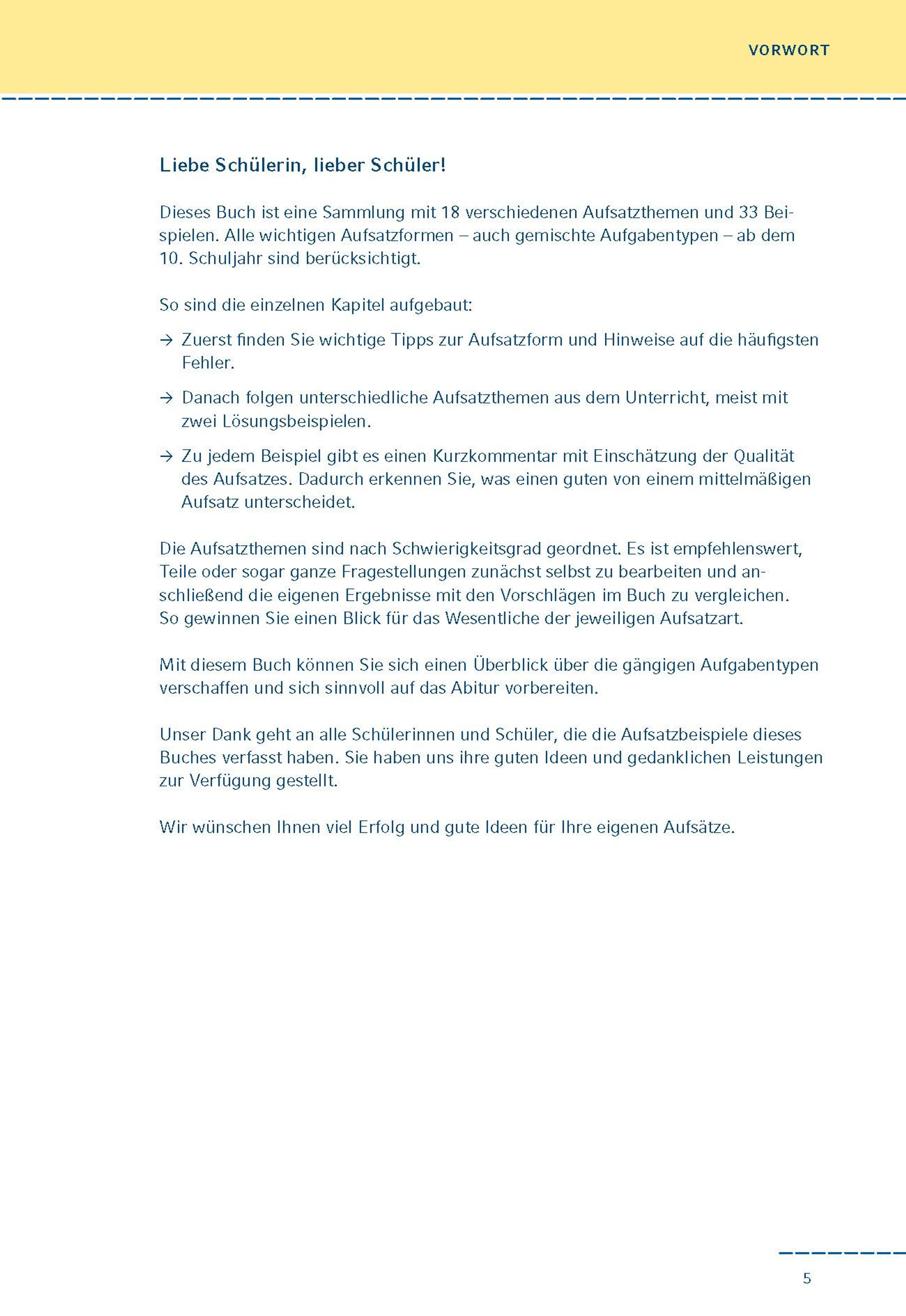 • 33 bewertete und kommentierte Muster-Beispiele zu allen wichtigen Aufsatzarten (Erörterung, Sachtextanalyse, Texterschließung, Essay, Kommentar, Gedichtinterpretation, etc.)