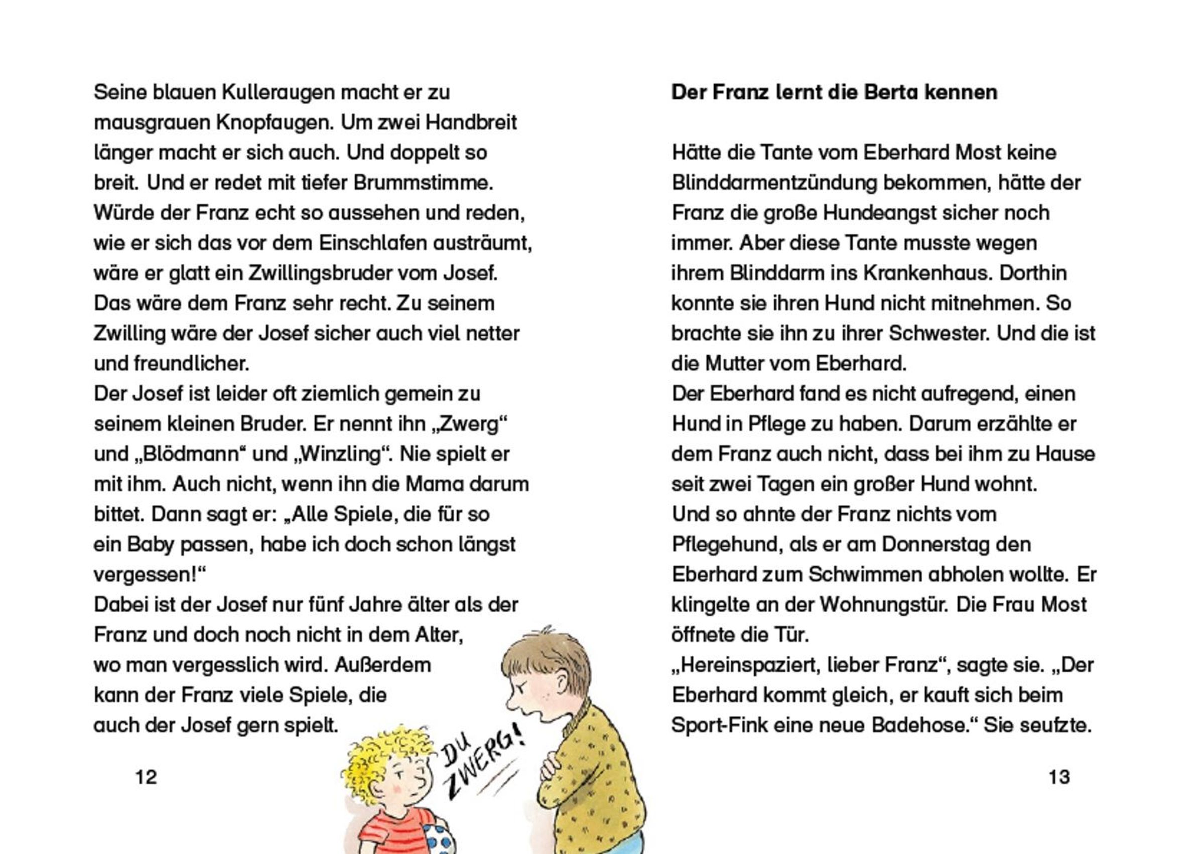 Christine Nöstlingers "Hundegeschichten vom Franz" ist ein lebendiges und unterhaltsames Kinderbuch, das jungen Lesern im Alter von 8 bis 10 Jahren die lustigen und manchmal herausfordernden Erlebnisse des Jungen Franz mit dem Hund Berta nahebringt. Nachdem Franz immer Angst vor Hunden hatte, verändert sich sein Leben, als der Hund seiner besten Freundes Eberhard zu ihnen kommt. Die Geschichten bieten eine spannende Mischung aus Humor und Lernmomenten, besonders über die Überwindung von Ängsten und das Knüpfen neuer Freundschaften. Nöstlinger verwendet eine ansprechende, kindgerechte Sprache, die junge Leser fördert und motiviert. Die Serie "Lesestarter" von Oetinger, zu der dieses Buch gehört, unterstützt zudem Leseanfänger mit vielen Bildern und Rätseln, die das Lesenlernen vereinfachen und Spaß machen.