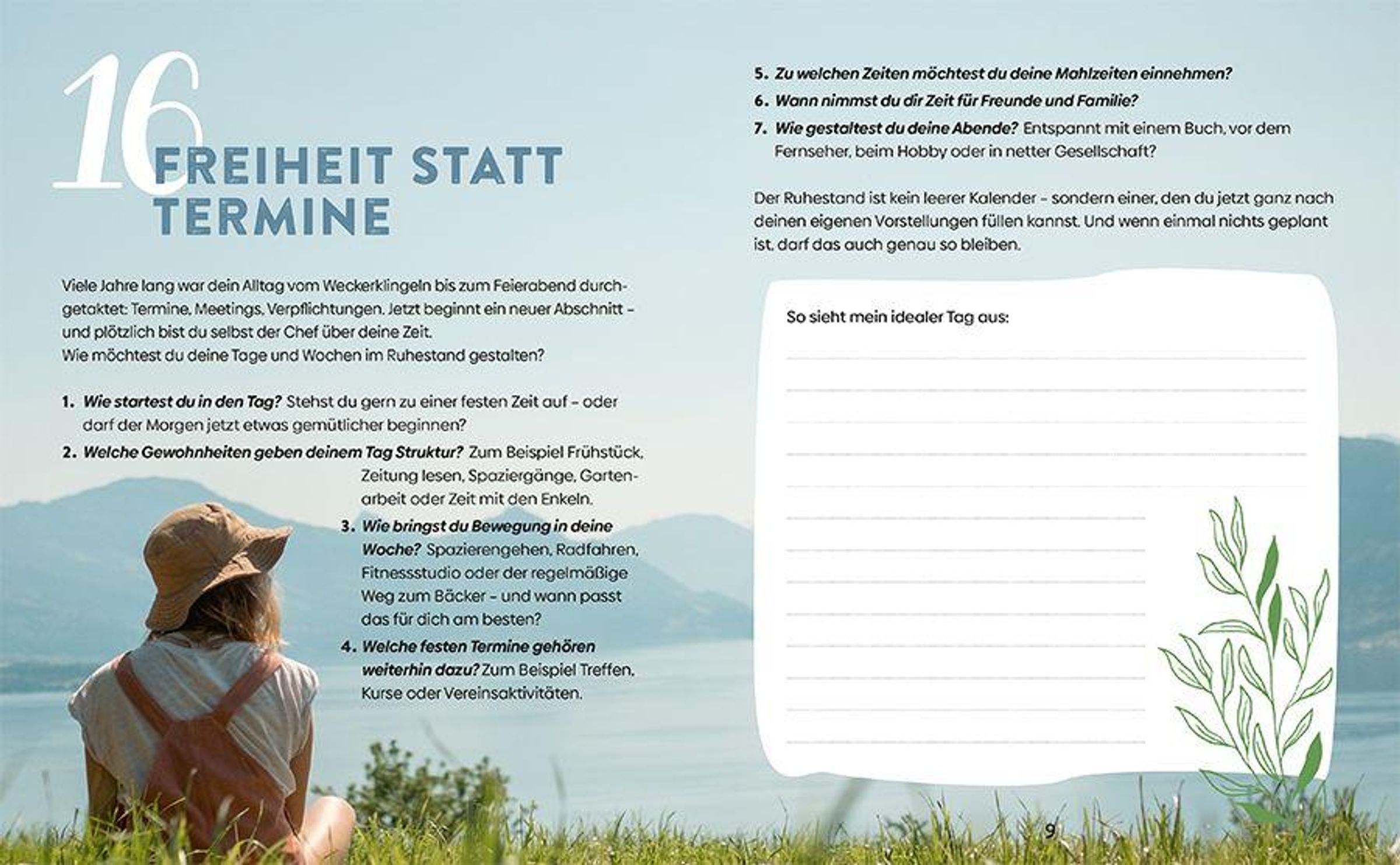 Dieses Buch ist kein Ratgeber im klassischen Sinn, sondern eine Einladung zum Ausprobieren, Innehalten und Weiterträumen . Das perfekte Geschenk für alle, die sich auf ihren Ruhestand freuen!