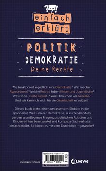 Dieses Buch bietet einen umfassenden Einblick in die spannende Welt unserer Demokratie. In kurzen Kapiteln werden grundlegende Fragen zu politischen Abläufen und Kinderrechten beantwortet und komplexe Sachverhalte einfach erklärt. So klappt es mit dem Durchblick - garantiert!