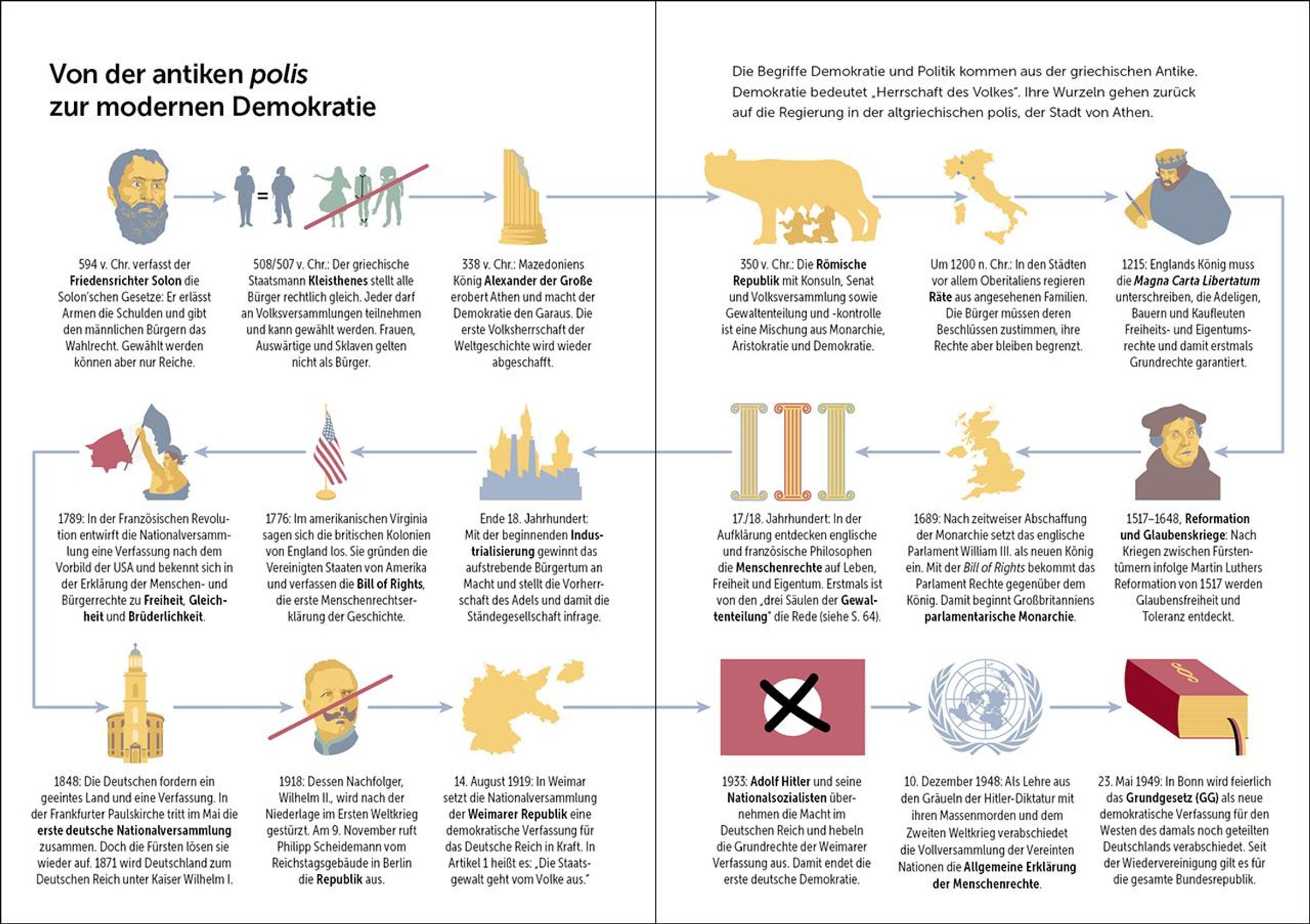 Dieses moderne Sachbuch erklärt Kindern und Jugendlichen ab 10 Jahren leicht verständlich komplexe Themen der Allgemeinbildung. Mit vielen Fotos und veranschaulichenden Infografiken erfahren die Lesenden alles über Politik und Demokratie, aber auch über die Rechte von Kindern und Jugendlichen. Endlich ein umfassendes Werk rund um diese wichtigen Themen - das ideale Nachschlagewerk!