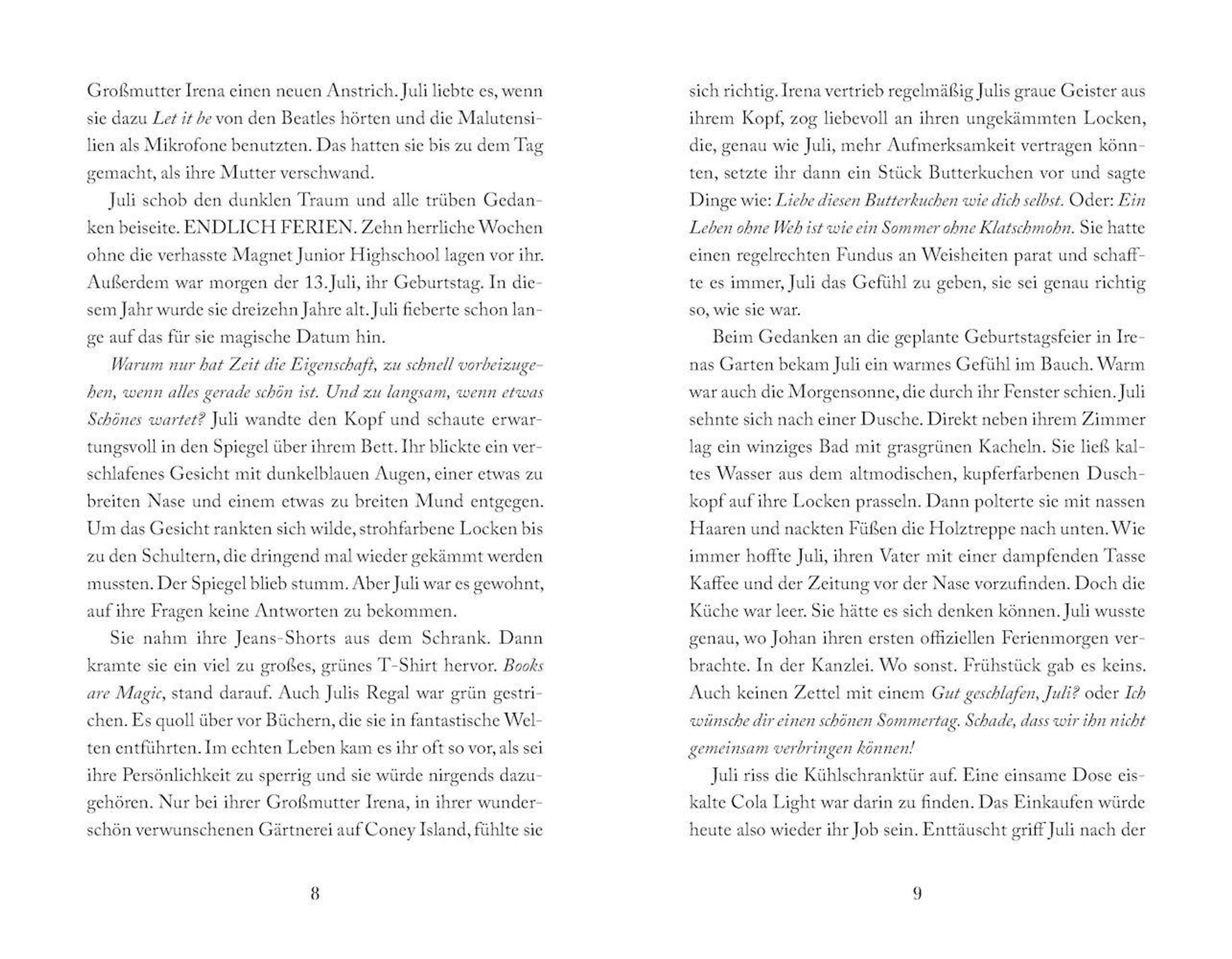 Juli Gold lebt in New York und fühlt sich fehl am Platz. Niemand um sie herum hat mehr Zeit. Alle starren ständig auf Bildschirme. Nur in der verwunschenen Gärtnerei ihrer Großmutter findet Juli, was sie vermisst - ein einfaches Leben in der Natur. An ihrem 13. Geburtstag bekommt sie ein magisches Zelt geschenkt. Darin fällt Juli gemeinsam mit dem Bäckerlehrling Janko aus ihrer Zeit und mitten hinein in eine idyllische Welt voller wilder Wälder und spannender Abenteuer. Doch schon bald müssen die beiden erkennen, dass der zauberhafte Schein trügt. Ein übermächtiger Gegner droht, die Zeit aller Welten zu verschlingen! Wird es Juli und Janko gelingen, die Zeit zusammen mit ihren Verbündeten zu retten?