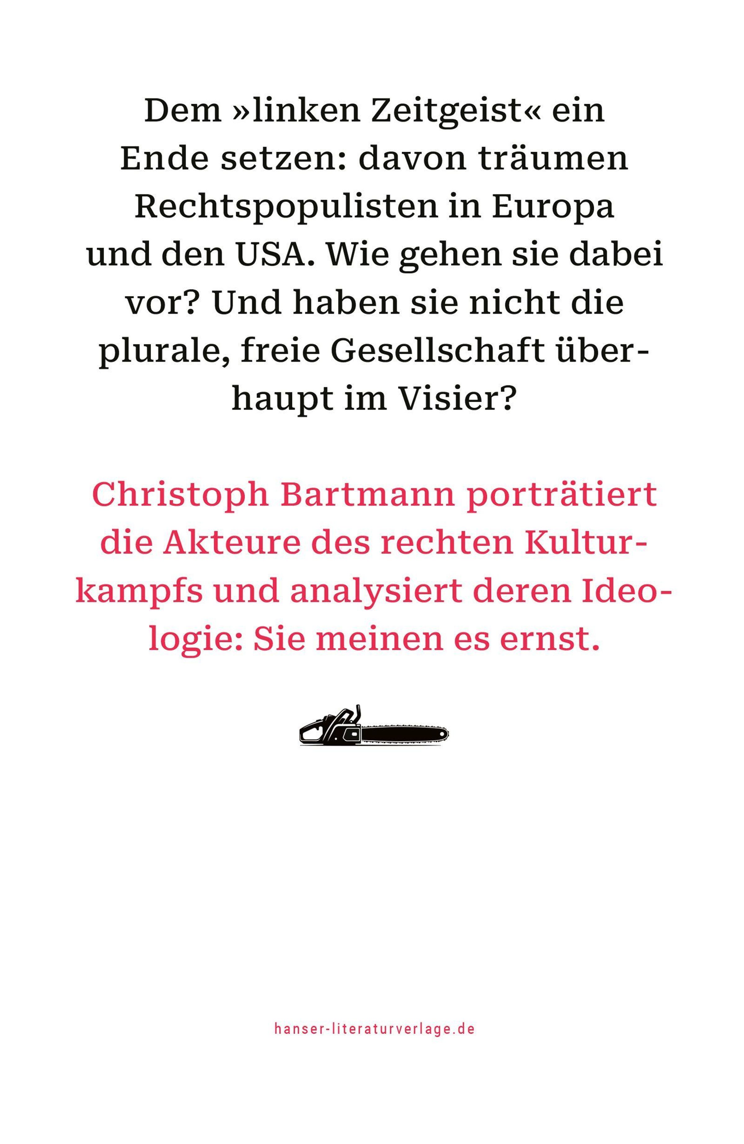 Kultur? Museen, Theater und Bibliotheken sind scheinbar nicht die Orte, von denen aus sich die Gesellschaft gestalten lässt. Wer sich in der Politik profilieren will, versucht sich auf anderen Feldern. Rechtspopulistische Parteien erkennen in dieser Gleichgültigkeit ihre Chance. Für sie ist Kultur der Kampfplatz, auf dem sie ihre anti-modernen, völkischen und homophoben Ideen durchsetzen können. In Polen, Österreich und den USA gehört das schon jetzt zum erschreckenden Alltag. Christoph Bartmann schlägt Alarm: Wenn die liberale Mitte diese Gefahr nicht ernst nimmt, hat die Rechte leichtes Spiel. Noch ist es nicht zu spät, Strategien gegen deren Kulturkampf zu entwickeln.