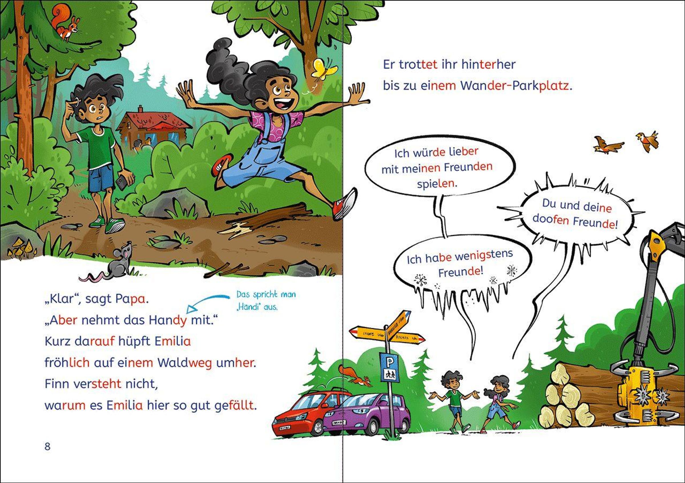 Finn und Emilia machen Urlaub mit ihren Eltern am Waldrand. Total öde - bis sie beim Spielen im Wald einen Mann beobachten. Er trägt eine Tasche. Voller Geld? Das muss ein Bankräuber sein. Heimlich nehmen die Geschwister die Verfolgung auf. Ob sie ihn überführen können?