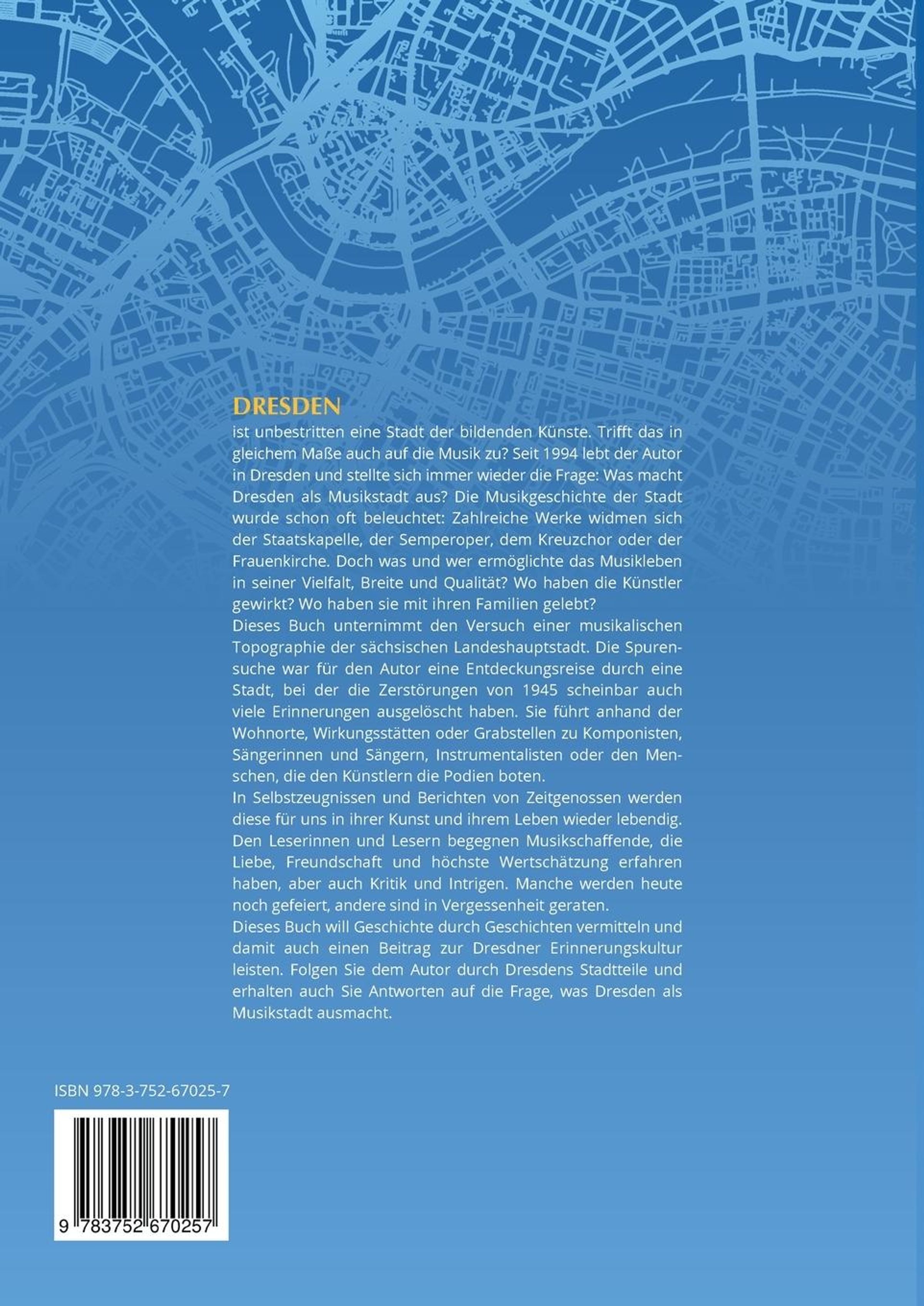 DRESDEN ist unbestritten eine Stadt der bildenden Künste. Trifft das in gleichem Maße auch auf die Musik zu? Seit 1994 lebt der Autor in Dresden und stellte sich immer wieder die Frage: Was macht Dresden als Musikstadt aus? Die Musikgeschichte der Stadt wurde schon oft beleuchtet: Zahlreiche Werke widmen sich der Staatskapelle, der Semperoper, dem Kreuzchor oder der Frauenkirche. Doch was und wer ermöglichte das Musikleben in seiner Vielfalt, Breite und Qualität? Wo haben die Künstler gewirkt? Wo haben sie mit ihren Familien gelebt? Dieses Buch unternimmt den Versuch einer musikalischen Topographie der Sächsischen Landeshauptstadt. Die Spurensuche war für den Autor eine Entdeckungsreise durch eine Stadt, bei der die Zerstörungen von 1945 scheinbar auch viele Erinnerungen ausgelöscht haben. Sie führt anhand der Wohnorte, Wirkungsstätten oder Grabstellen zu Komponisten, Sängerinnen und Sängern, Instrumentalisten oder den Menschen, die den Künstlern die Podien boten. In Selbstzeugnissen und Berichten von Zeitgenossen, aber auch durch 884 s / w sowie 18 farbigen Abbildungen werden diese für uns in ihrer Kunst und ihrem Leben wieder lebendig. Den Leserinnen und Lesern begegnen Musikschaffende, die Liebe, Freundschaft und höchste Wertschätzung erfahren haben, aber auch Kritik und Intrigen. Manche werden heute noch gefeiert, andere sind in Vergessenheit geraten. Dieses Buch will Geschichte durch Geschichten vermitteln und damit auch einen Beitrag zur Dresdner Erinnerungskultur leisten. Folgen Sie dem Autor durch Dresdens Stadtteile und erhalten auch Sie Antworten auf die Frage, was Dresden als Musikstadt ausmacht.