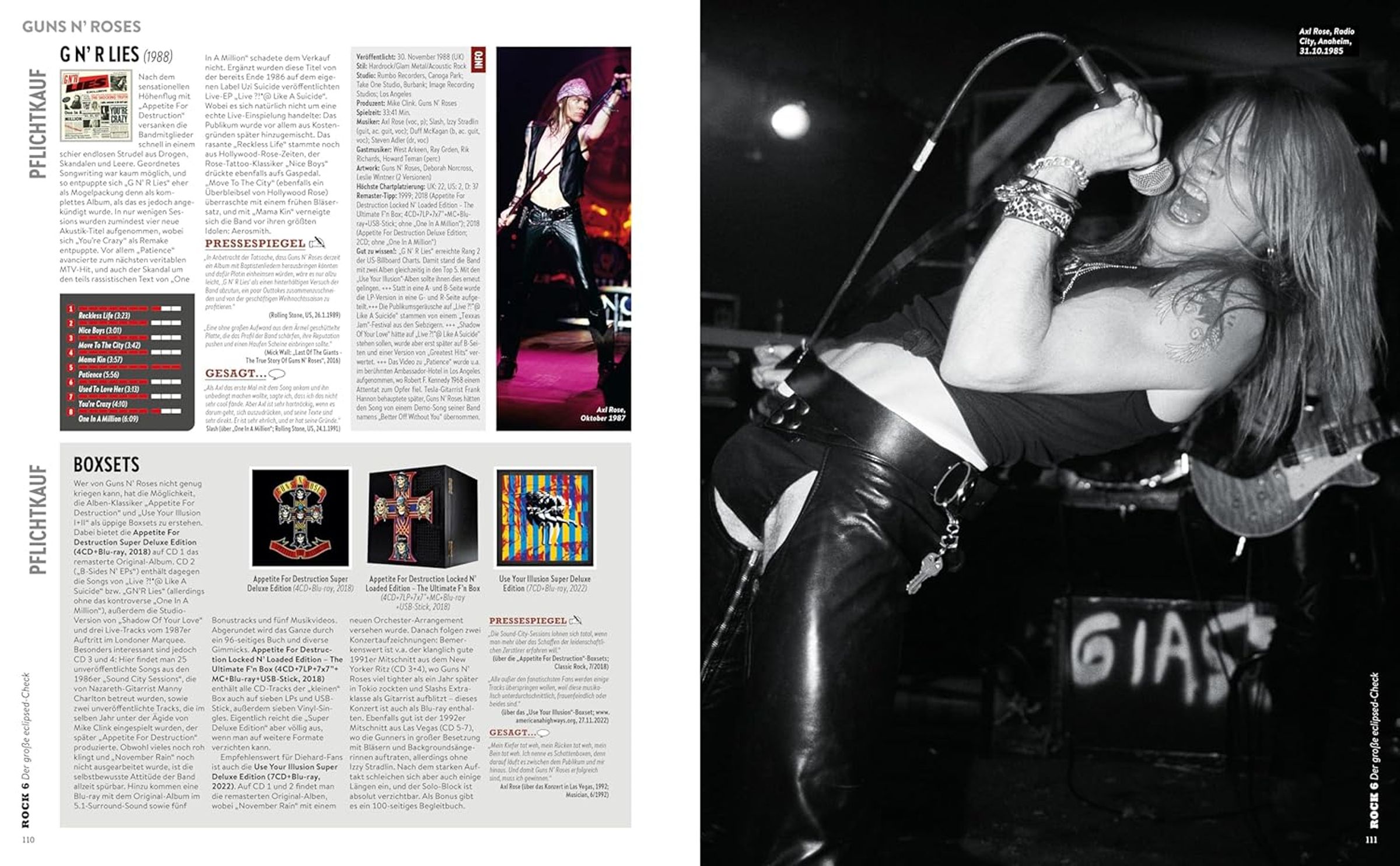 Die eclipsed-Redaktion hat nicht nur zu jedem Act sämtliche relevante Infos, Hintergründe, Pressezitate und Musikerstatements zu den einzelnen Alben zusammengetragen, sondern außerdem ein übersichtliches Albenranking (in fünf Kategorien – von „Kaufrausch“ bis „Fehlkauf“) vorgelegt, inklusive einer Einzelbewertung aller Songs. „ROCK“ bietet einen spannenden Überblick für Einsteiger und detailliertes Expertenwissen für Kenner.