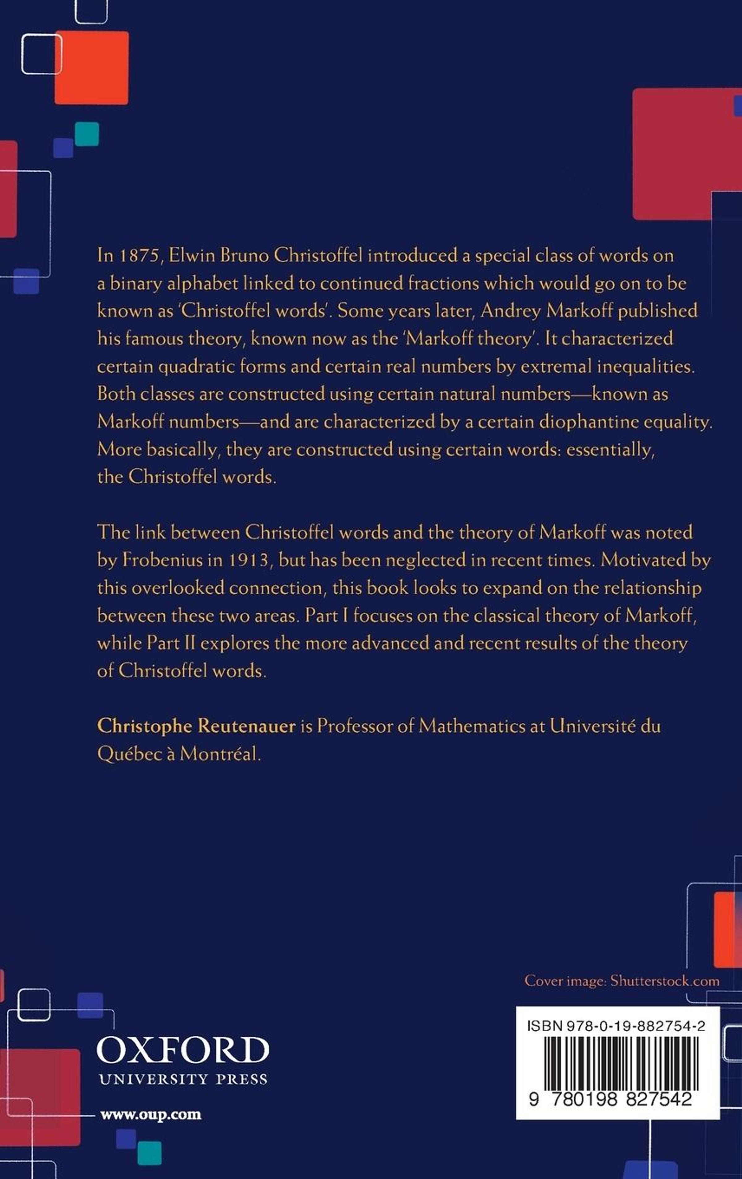 In 1875, Elwin Bruno Christoffel introduced a special class of words on a binary alphabet linked to continued fractions which would go onto be known as Christoffel words. Some years later, Andrey Markoff published his famous theory, the now called Markoff theory. It characterized certain quadratic forms and certain real numbers by extremal inequalities. Both classes are constructed using certain natural numbers known as Markoff numbers and they are characterized by a certain Diophantine equality. More basically, they are constructed using certain words essentially the Christoffel words. The link between Christoffel words and the theory of Markoff was noted by Ferdinand Frobenius in 1913, but has been neglected in recent times. Motivated by this overlooked connection, this book looks to expand on the relationship between these two areas. Part 1 focuses on the classical theory of Markoff, while Part II explores the more advanced and recent results of the theory of Christoffel words.