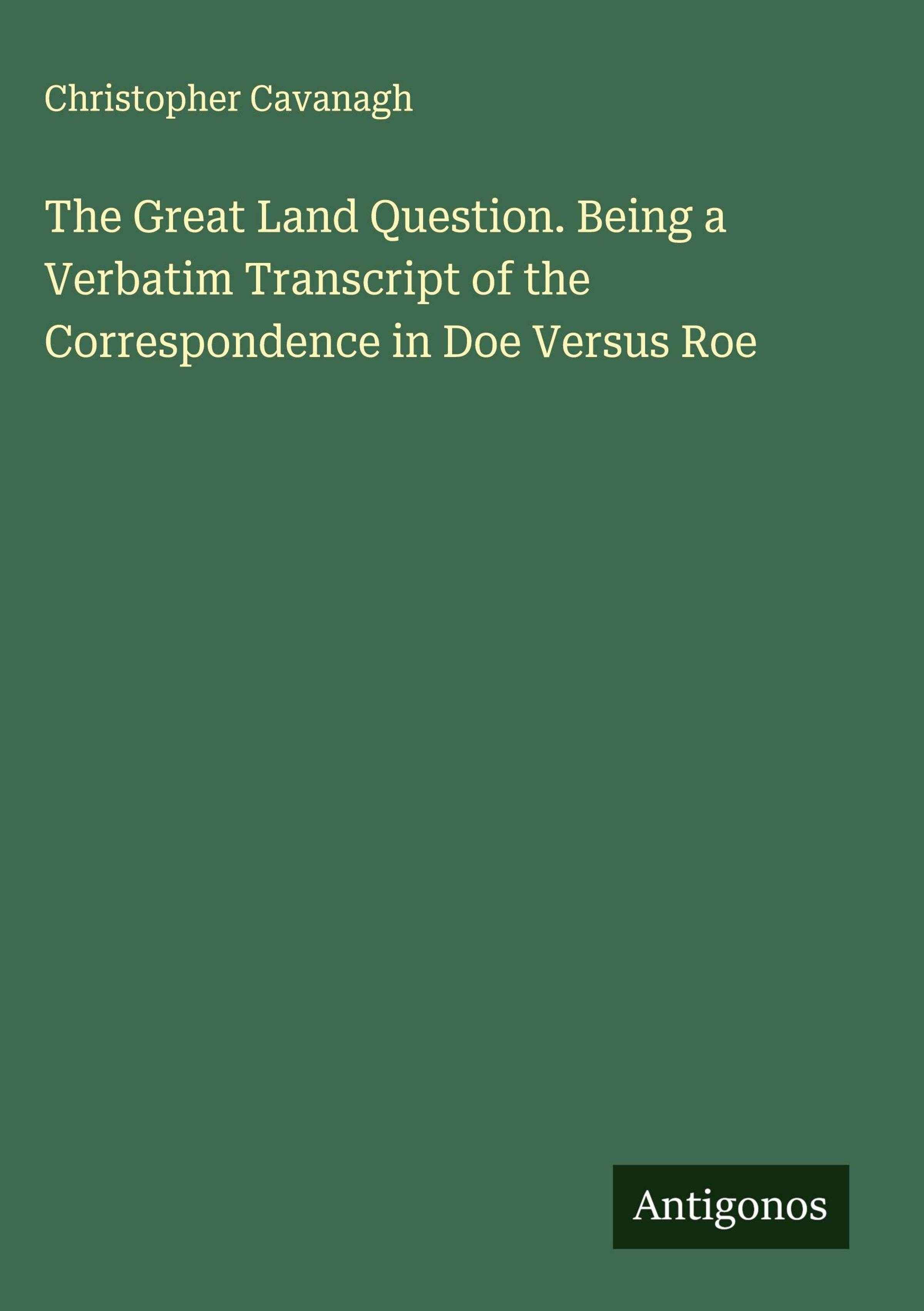 Christopher Cavanagh: The Great Land Question. Being a Verbatim Transcript of the Correspondence in Doe Versus Roe, Gebunden