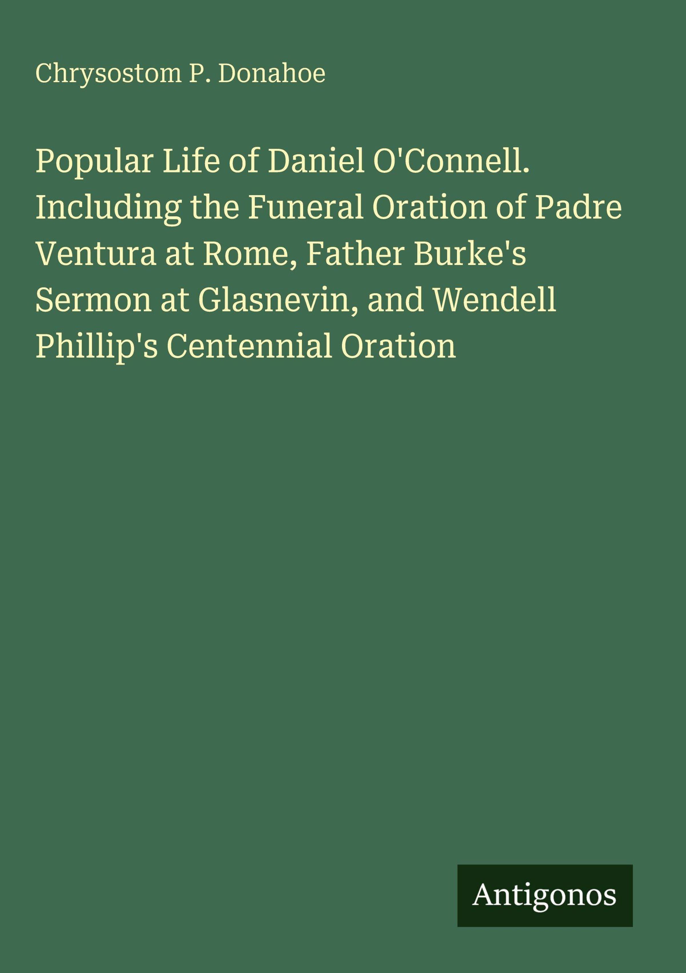 Popular Life of Daniel O'Connell. Including the Funeral Oration of Padre Ventura at Rome, Father Burke's Sermon at Glasnevin, and Wendell Phillip's Centennial Oration